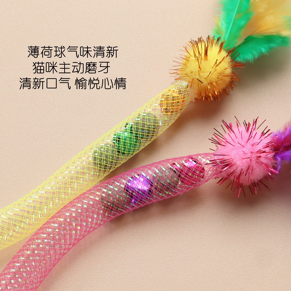탄성 그물 고양이 민트 공 고양이 장난감 자기 즐거움 씹는 고양이 장난감 물린 방지 깃털 새끼 고양이 자기 즐거움 애완 동물 용품