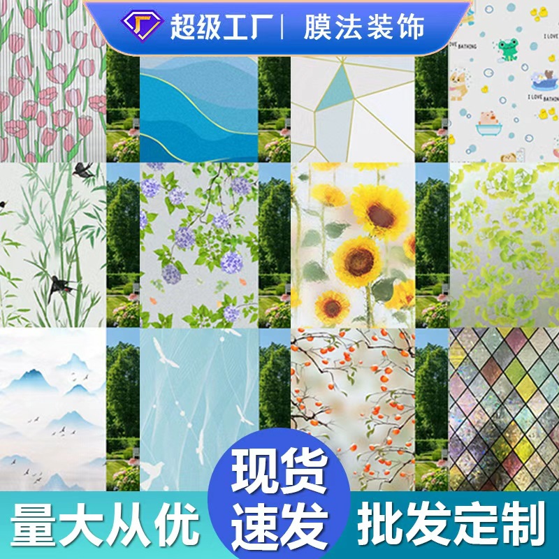 도매 컬러 인쇄 패턴 유리 스티커 침실 엿보기 방지 창 스티커 빛 투과 거실 두꺼운 젖빛 유리 필름스토어 가기