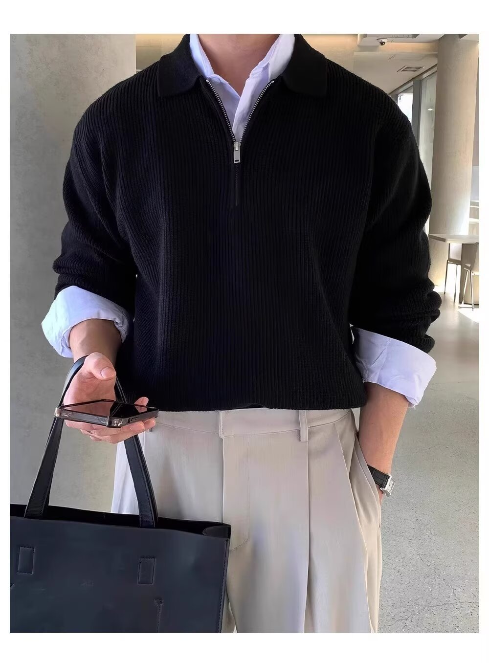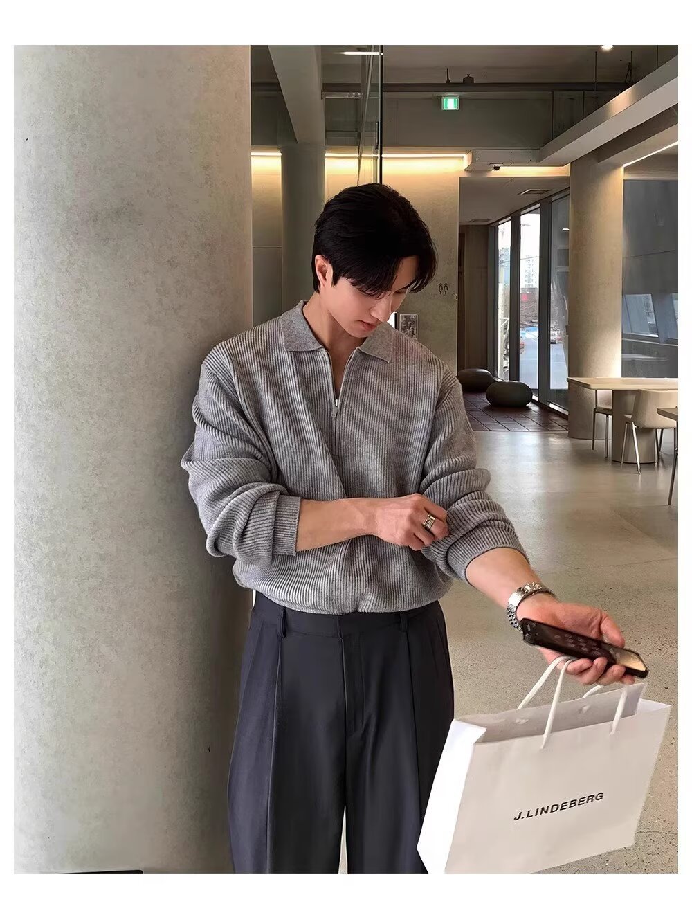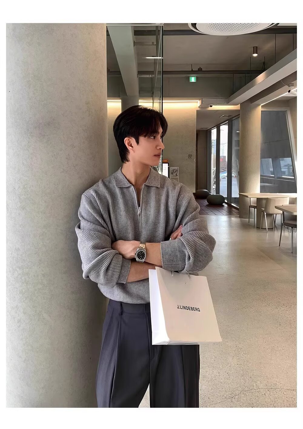 겨울 한국식 Ins 하이 엔드 옷깃 하프 지퍼 스웨터 남자 트렌디 캐주얼 스웨터 재킷스토어 가기