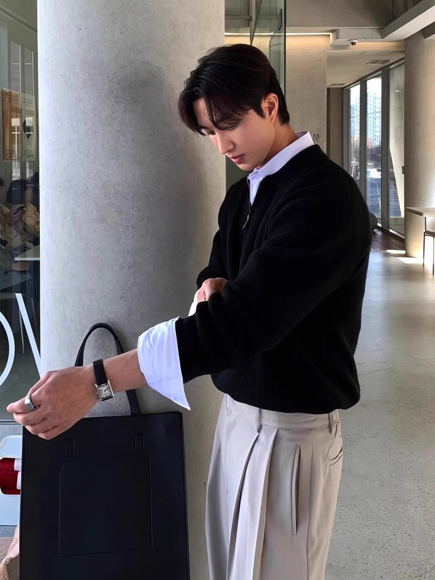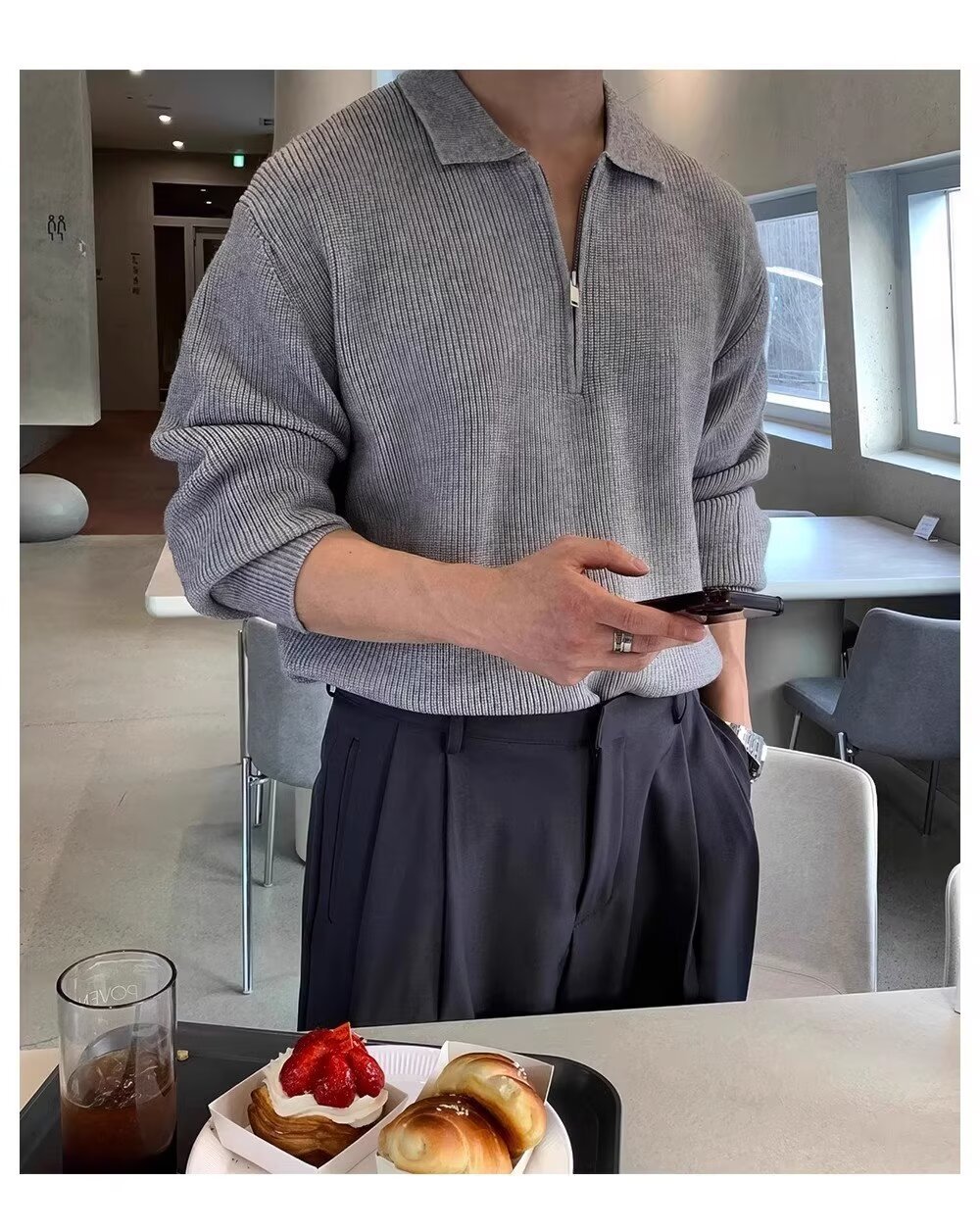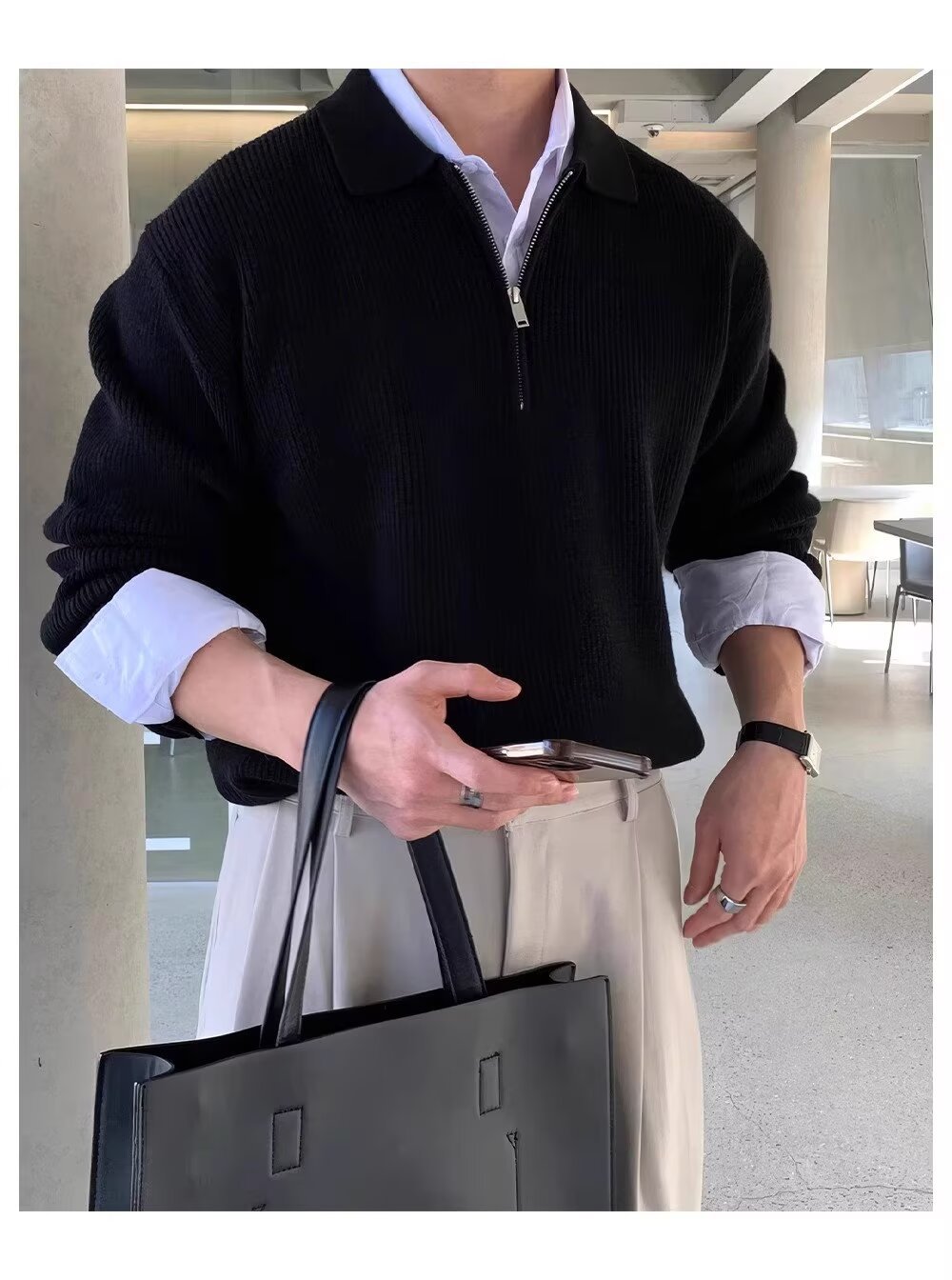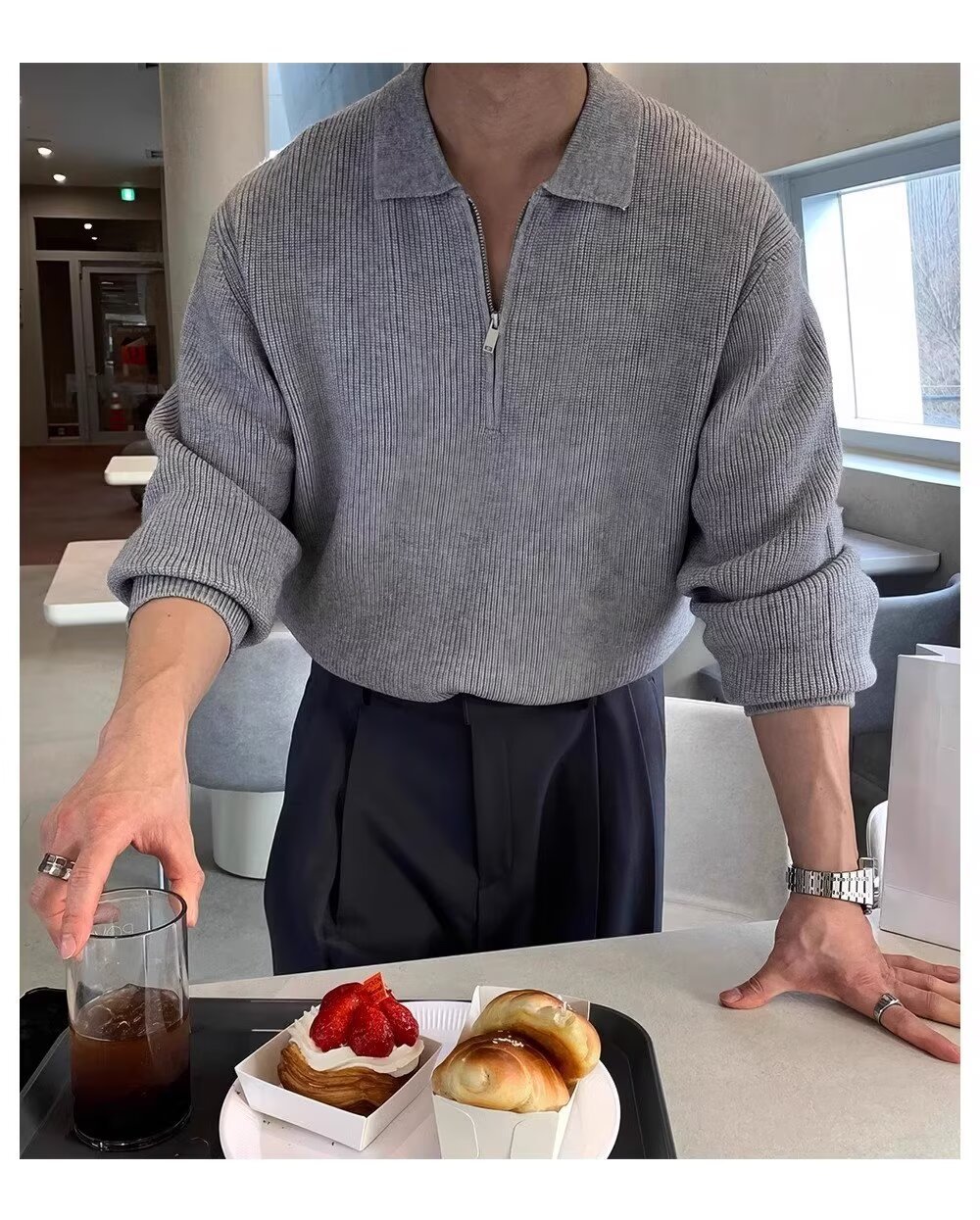겨울 한국식 Ins 하이 엔드 옷깃 하프 지퍼 스웨터 남자 트렌디 캐주얼 스웨터 재킷스토어 가기
