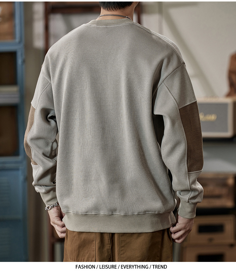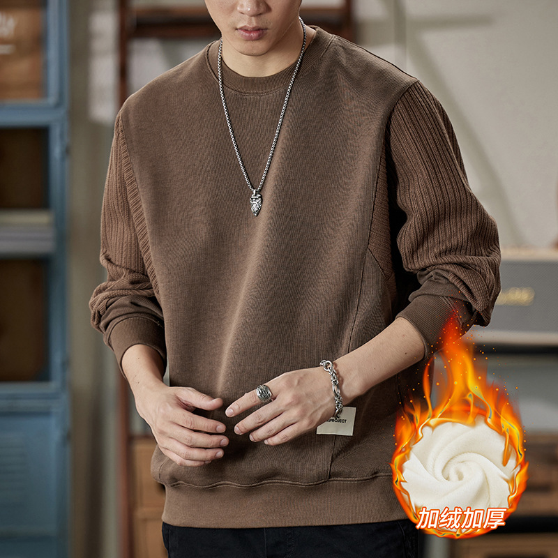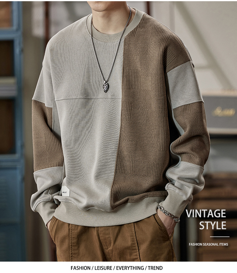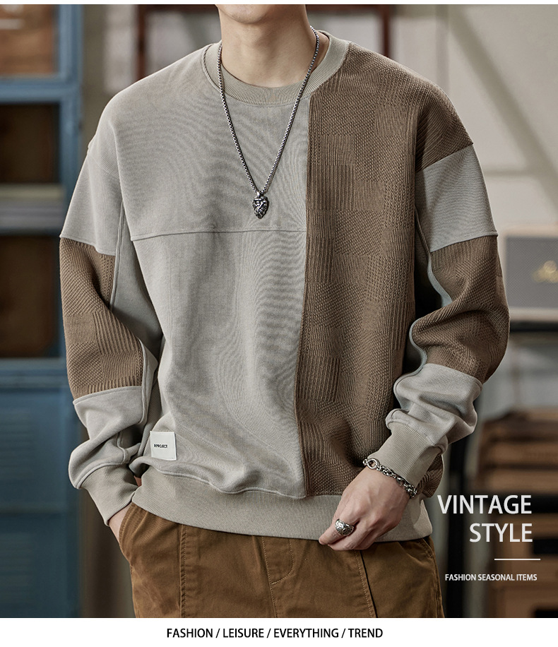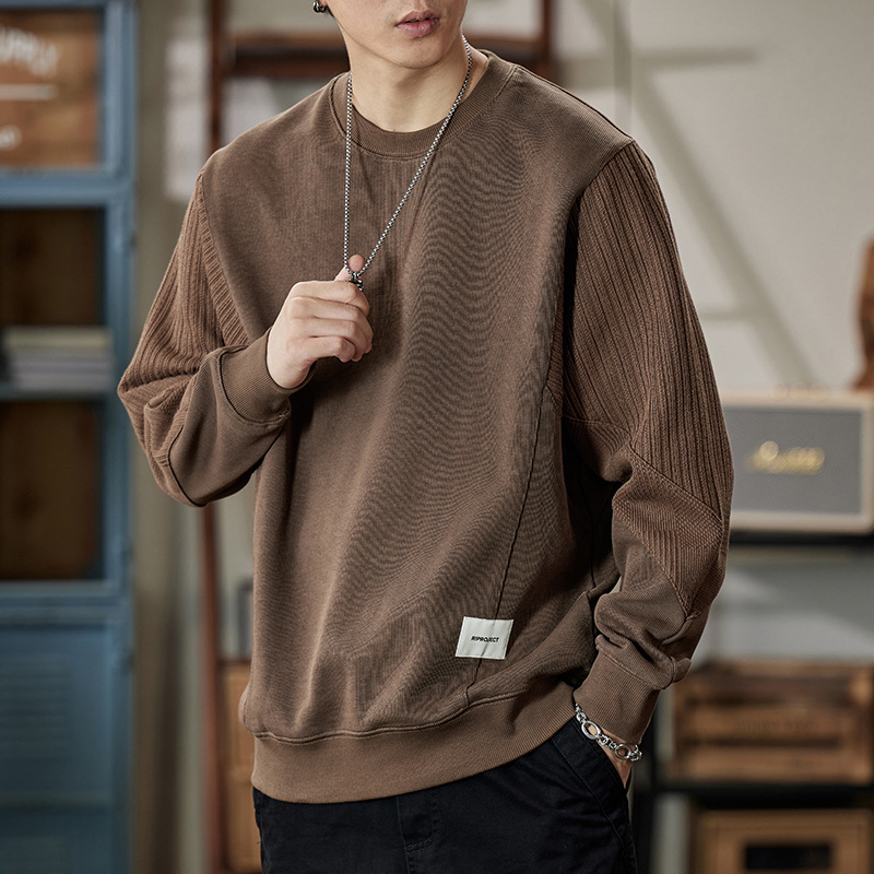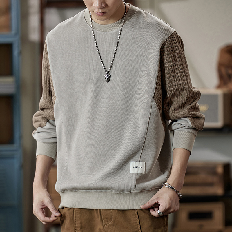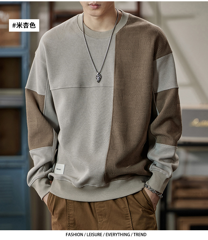 잘 생긴 베이지 색 스웨터 남자의 가을과 겨울 2024 느슨한베이스 셔츠 바느질 후드 긴 소매 최고 가을스토어 가기