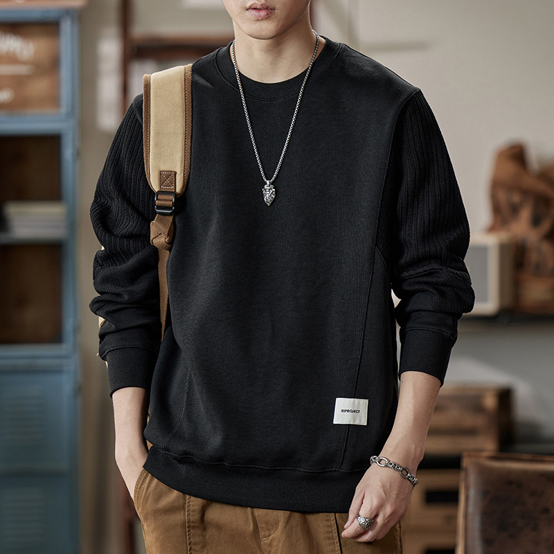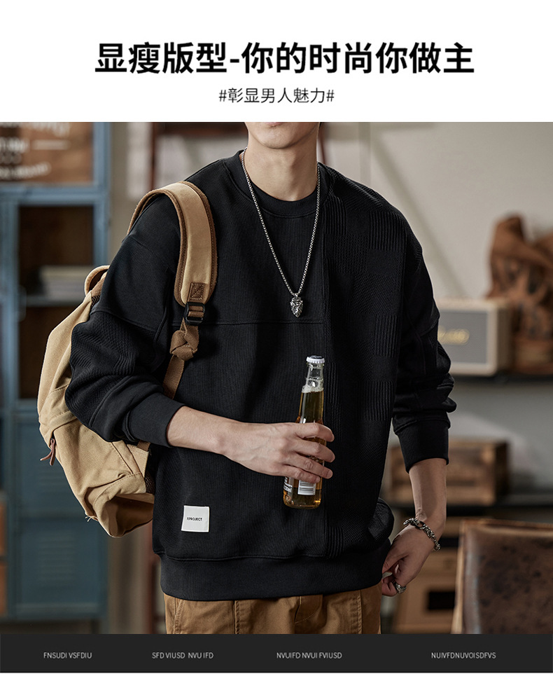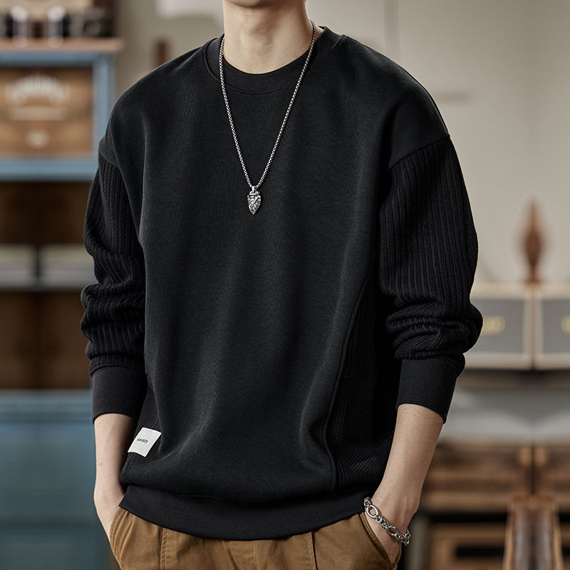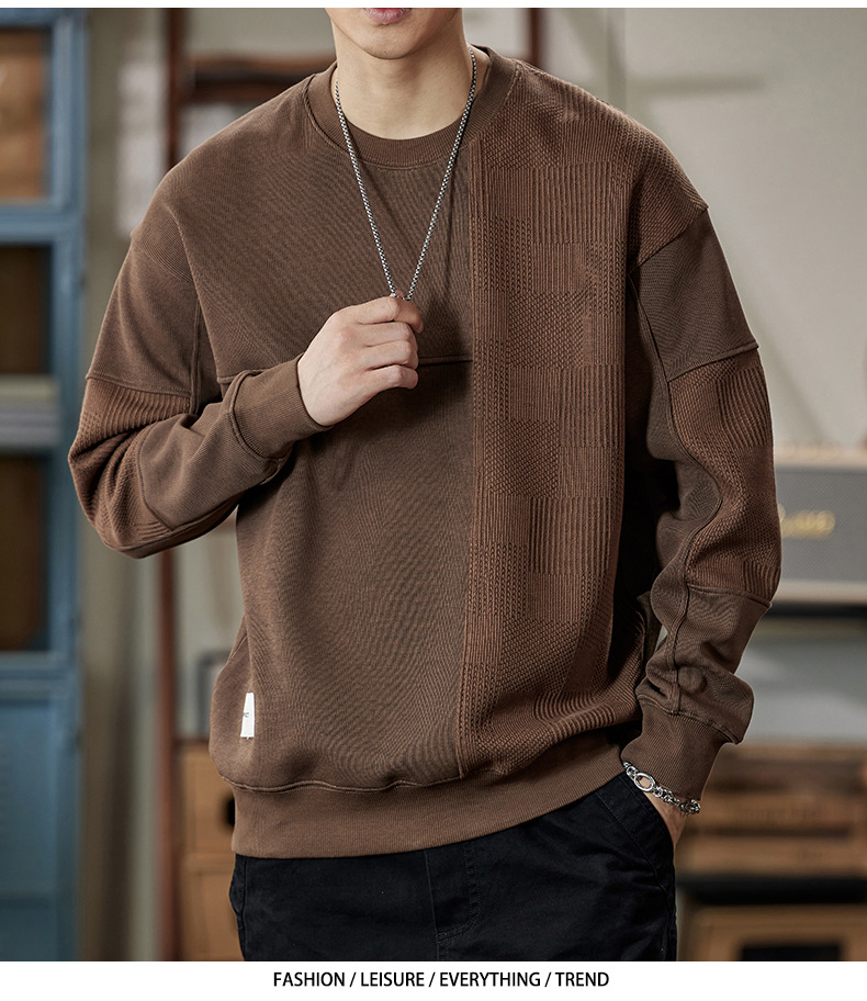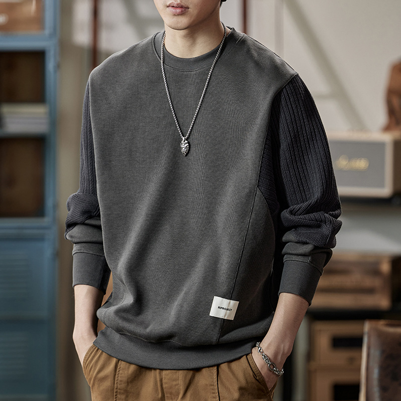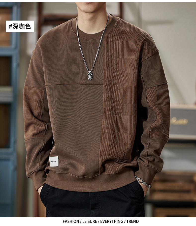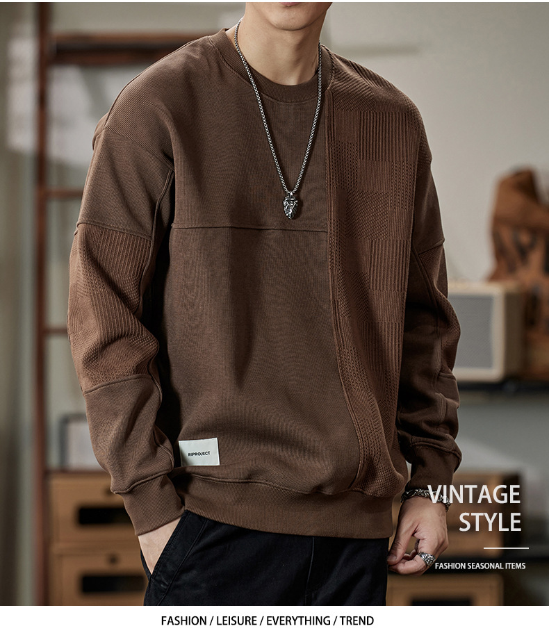 잘 생긴 베이지 색 스웨터 남자의 가을과 겨울 2024 느슨한베이스 셔츠 바느질 후드 긴 소매 최고 가을스토어 가기