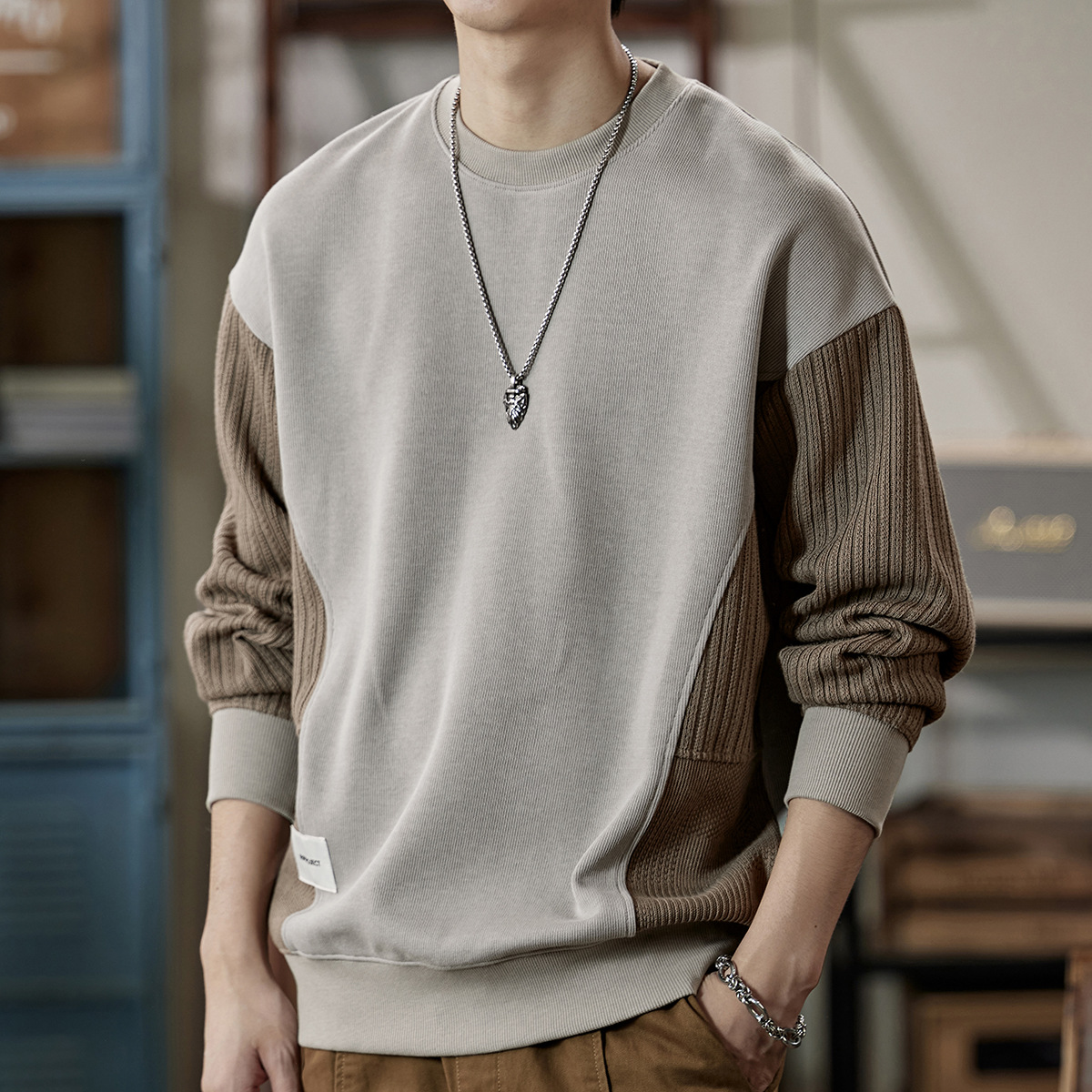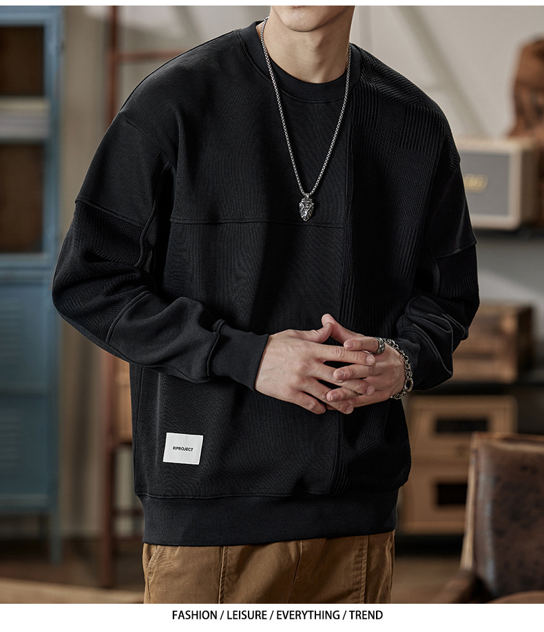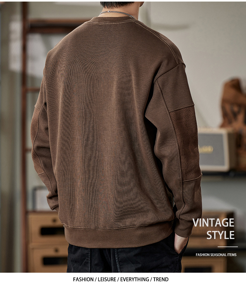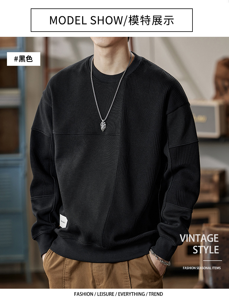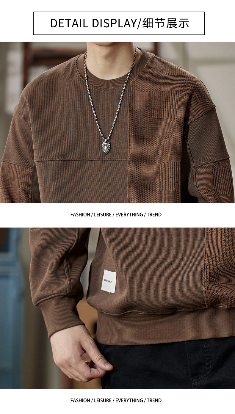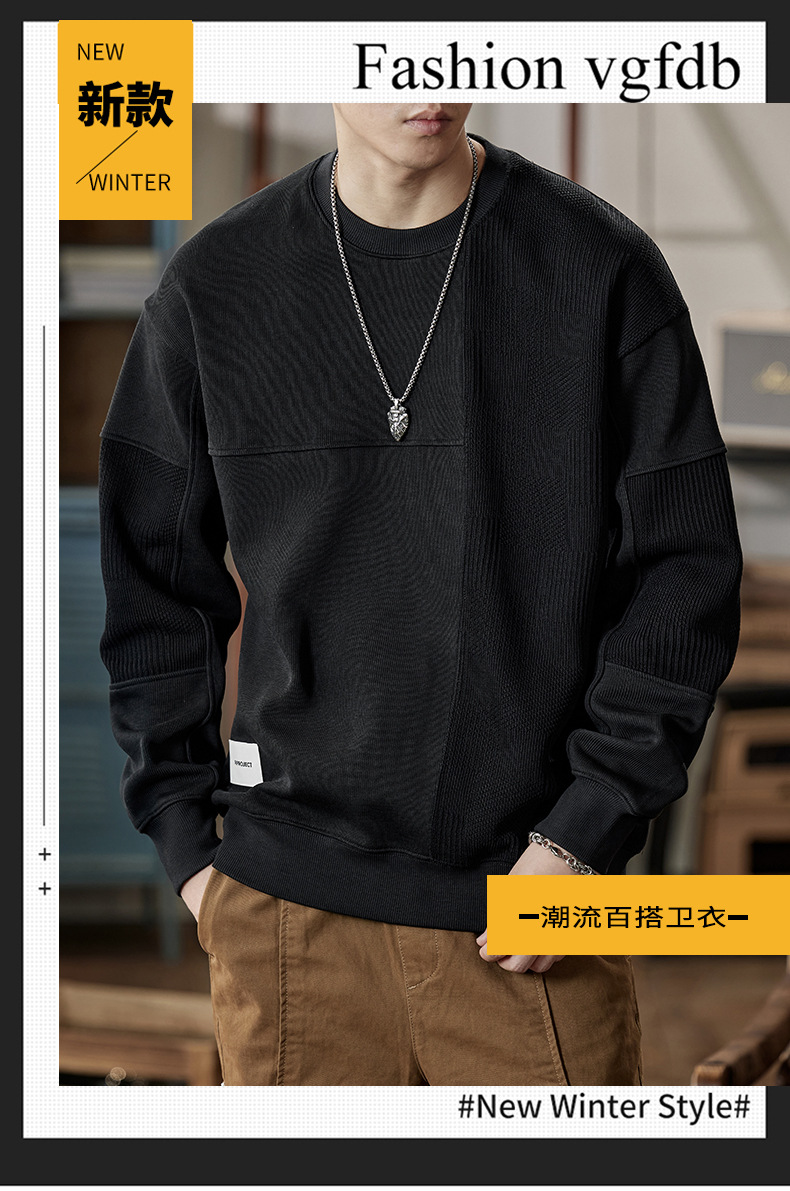 잘 생긴 베이지 색 스웨터 남자의 가을과 겨울 2024 느슨한베이스 셔츠 바느질 후드 긴 소매 최고 가을스토어 가기