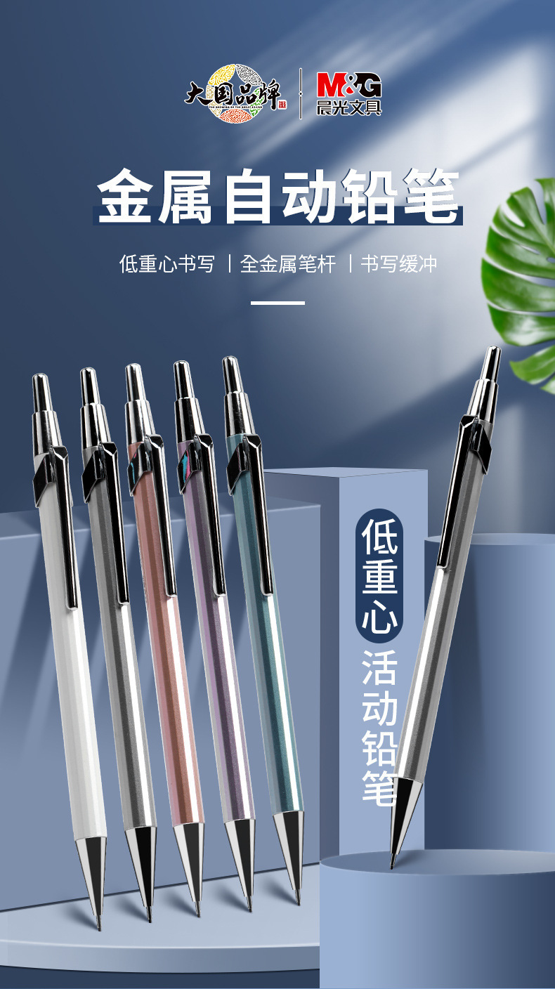 Chenguang Youth Edition 금속 기계 연필 0.5/0.7 낮은 중력 연필 학생 활동 연필 AMPU6303