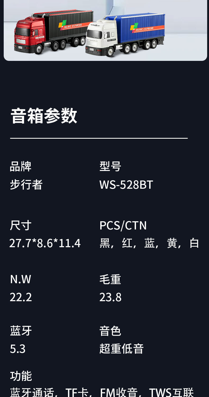 국경을 넘는 인기 상품 WSTER 블루투스 스피커 대형 트럭 모형 컨테이너 트럭 초강력 베이스 가정용 자동차 블루투스 스피커스토어 가기