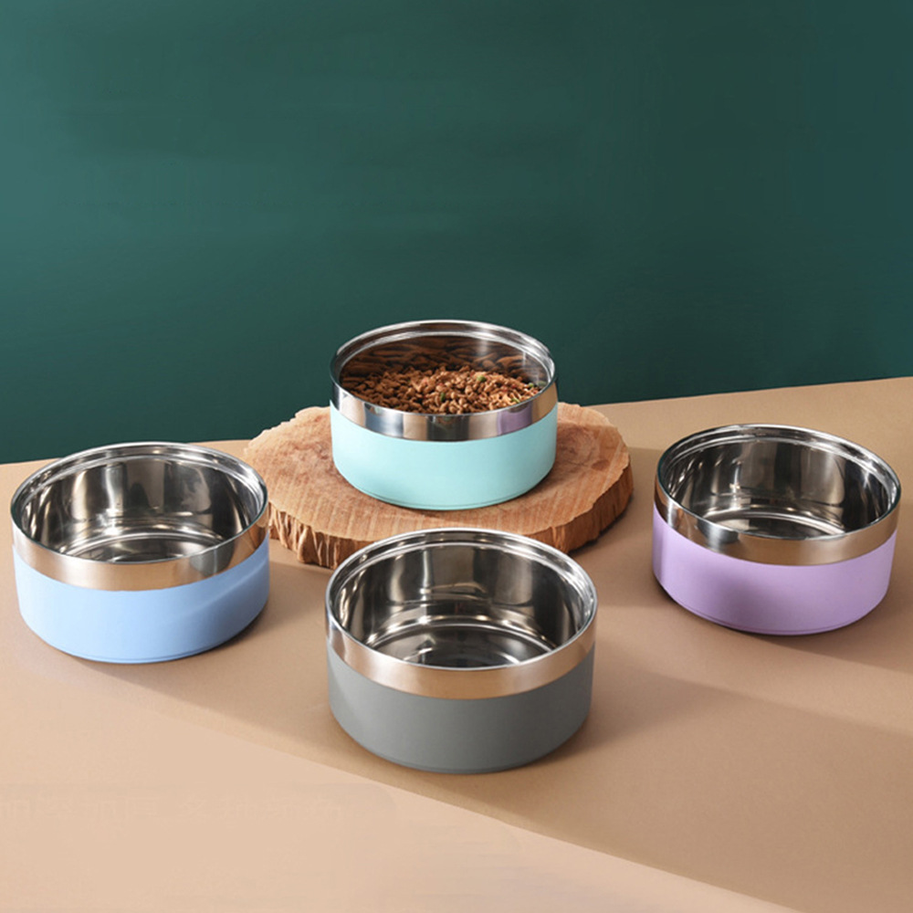국경 간 스테인레스 스틸 개 그릇 대용량 미끄럼 방지 노크 고양이 그릇 두꺼운 더블 레이어 스테인레스 스틸 개 애완 동물 그릇
