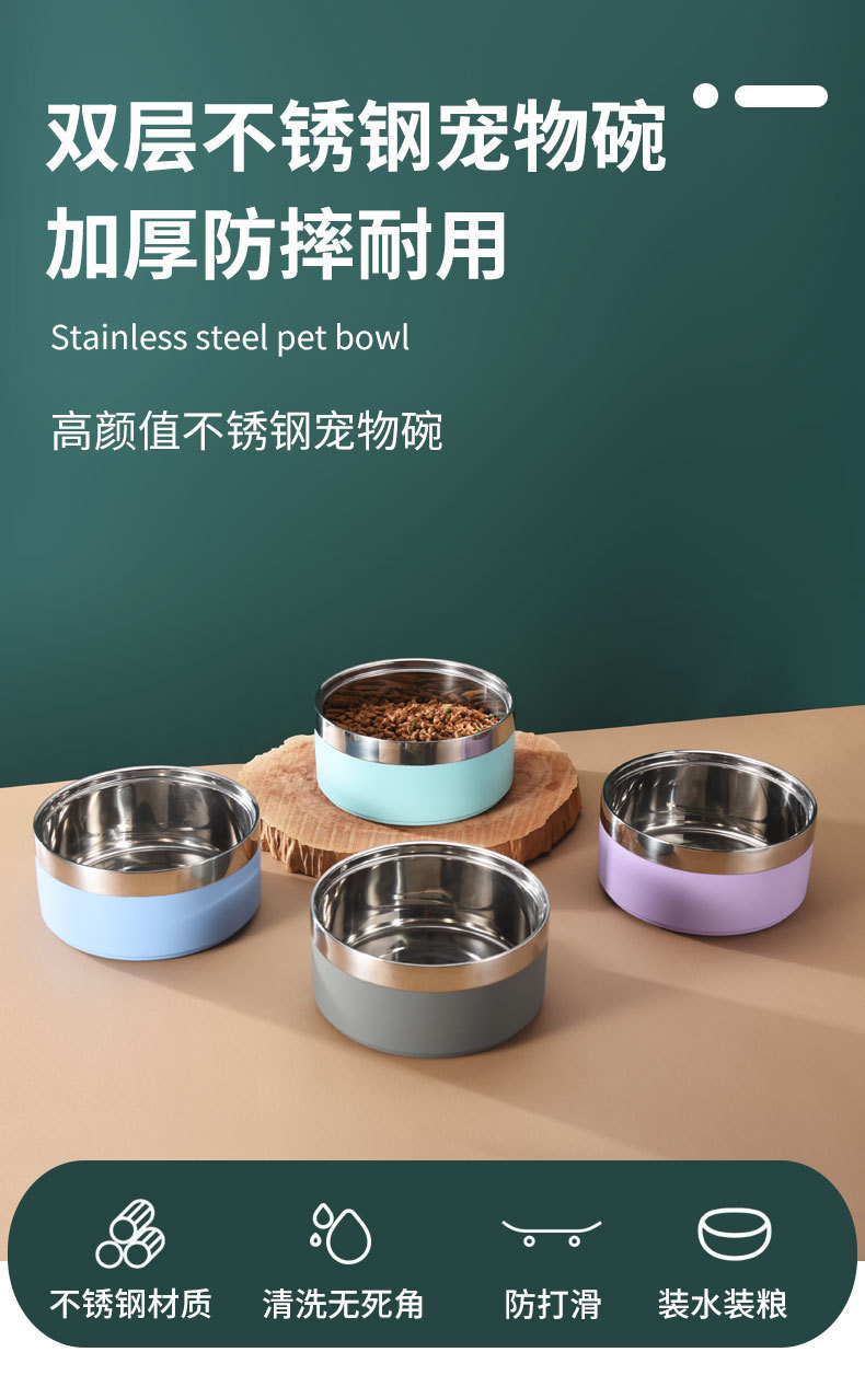 국경 간 스테인레스 스틸 개 그릇 대용량 미끄럼 방지 노크 고양이 그릇 두꺼운 더블 레이어 스테인레스 스틸 개 애완 동물 그릇스토어 가기