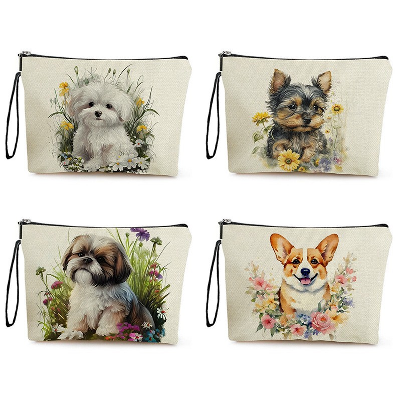 간단한 귀여운 개 요소 화장품 가방 여행 휴대용 워시 가방 항목 작은 저장 가방 여성용 립스틱 가방스토어 가기