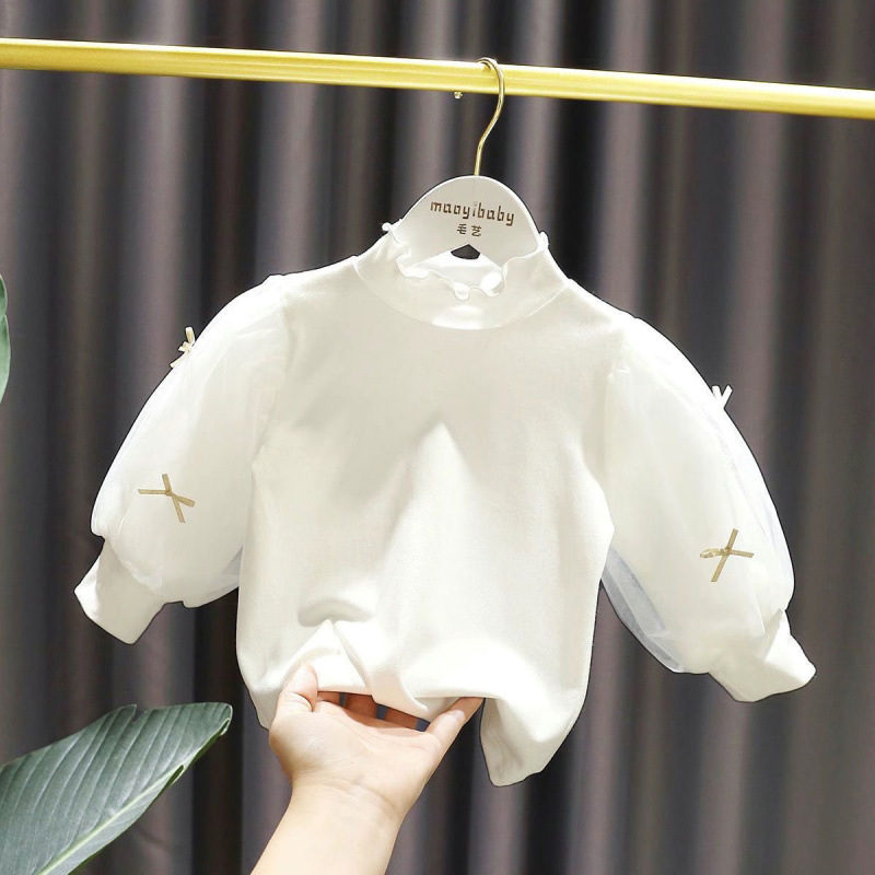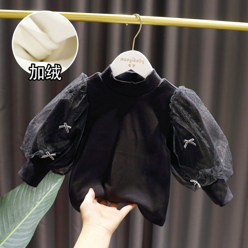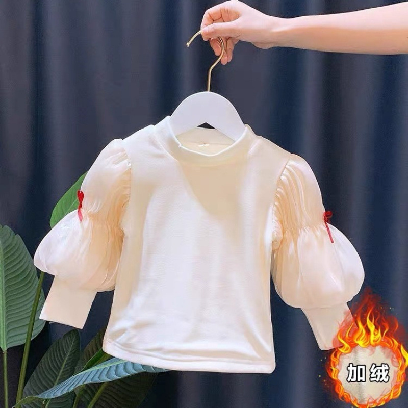 가을과 겨울 기모 소녀 퍼프 슬리브 베이스 셔츠 봄과 가을 새로운 가을 여성의 아기 면 긴 소매베이스 셔츠스토어 가기
