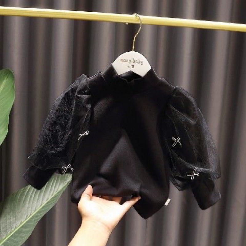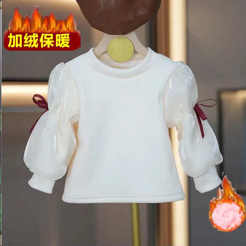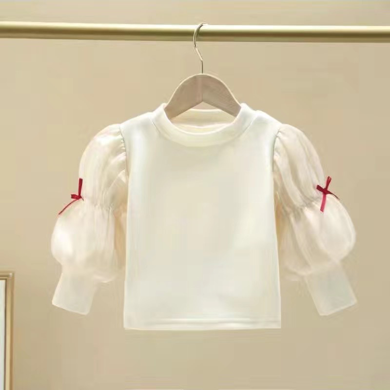 女童泡泡袖打底衫春秋2023新款秋季女宝宝纯棉长袖打底衣加绒秋冬