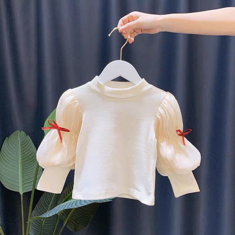 가을과 겨울 기모 소녀 퍼프 슬리브 베이스 셔츠 봄과 가을 새로운 가을 여성의 아기 면 긴 소매베이스 셔츠