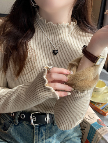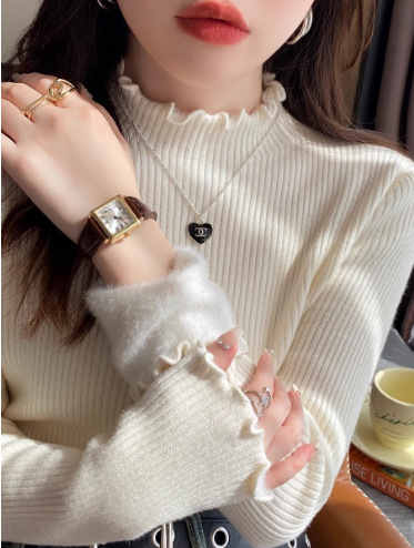 기모 두꺼운 원피스 캐시미어 니트베이스 셔츠 여성용 하프 터틀넥 스웨터 가을과 겨울 긴팔 내부 스웨터
