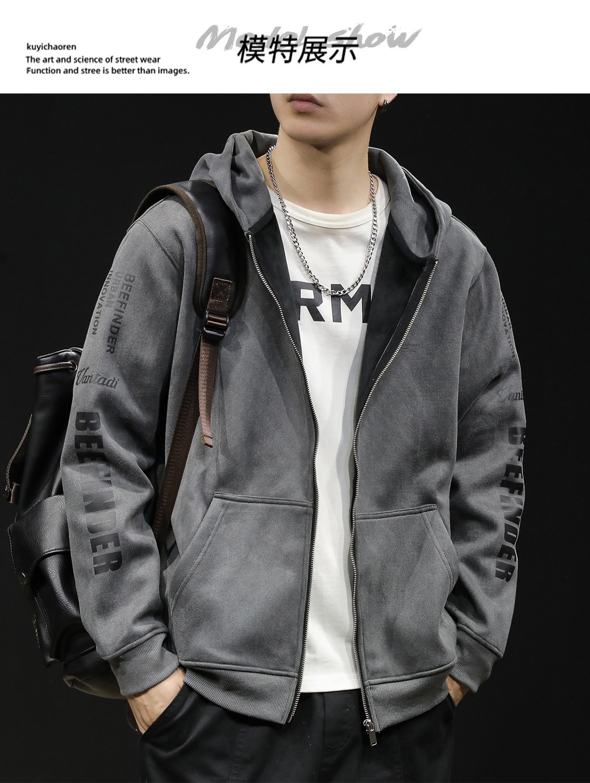 지퍼 카디건 스웨터 남자 후드 가을과 겨울 남자 가을 플러스 사이즈 남자 봄과 가을 스포츠 코트 2024 새로운스토어 가기