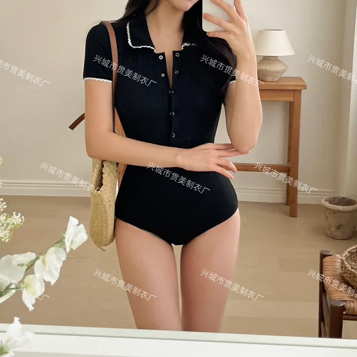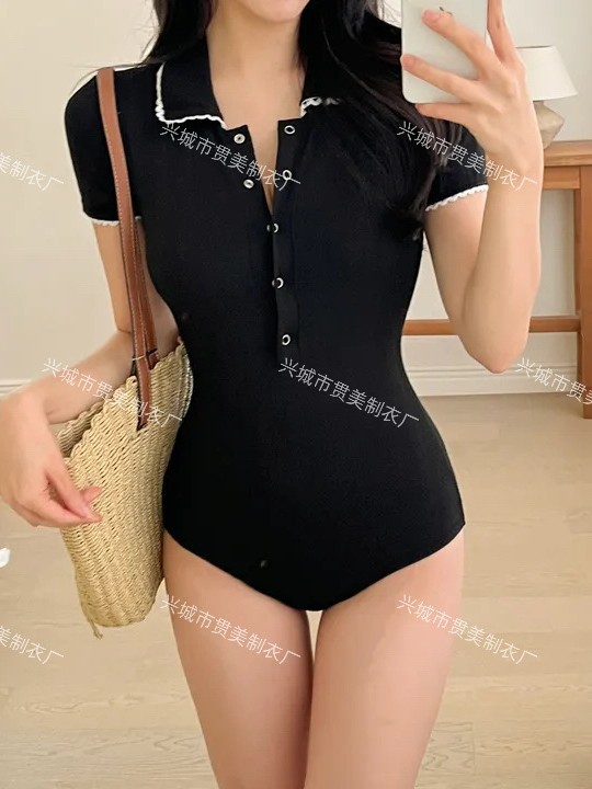 새로운 한국 인 스타일 보수적 인 배 뒤덮인 슬리밍 반팔 하이 엔드 다이빙 세트 여성을위한 온천 휴가 수영복스토어 가기