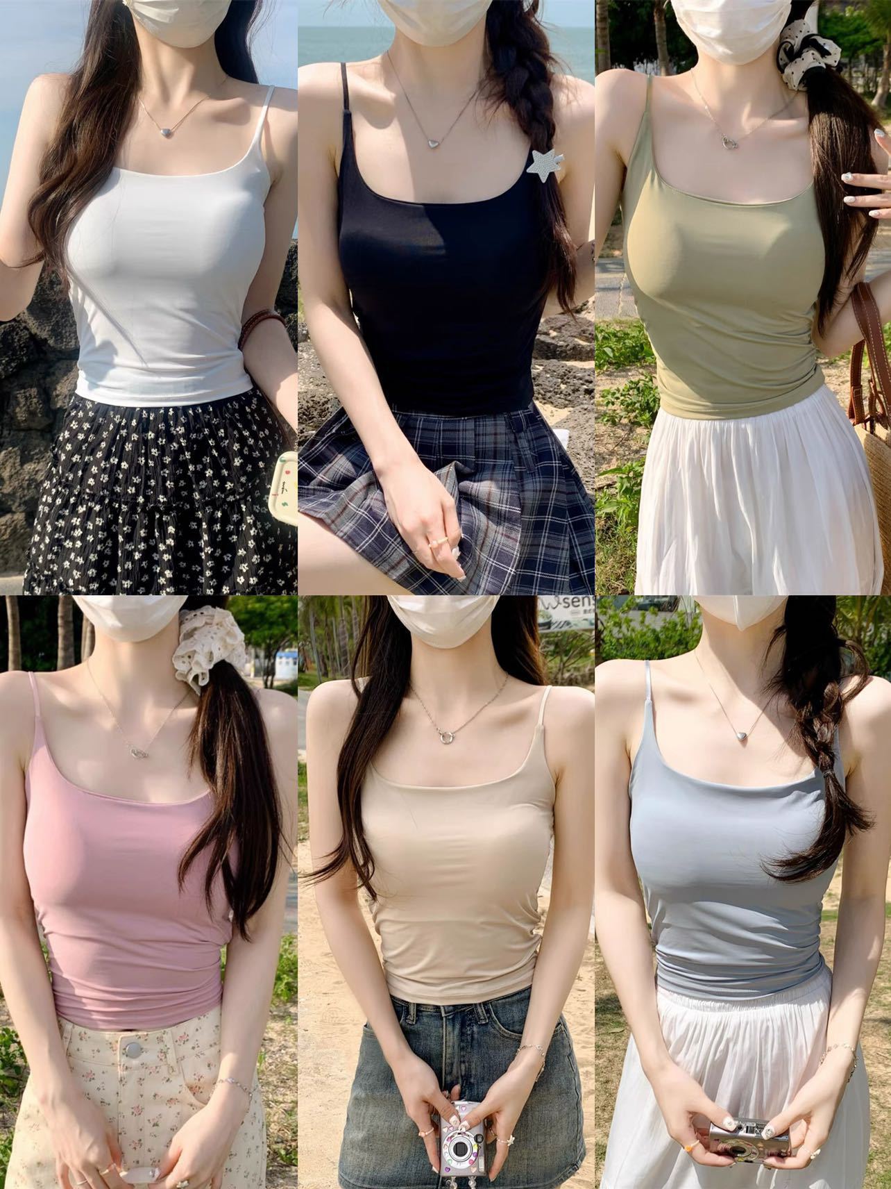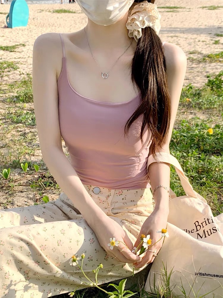 여름 빙시 스파이스 걸스, 카미 솔 조끼 팬티 여성 가슴 패드 슬림 핏 내부 착용 외부 착용 슬리밍 조정 가능한 어깨 스트랩 탑
