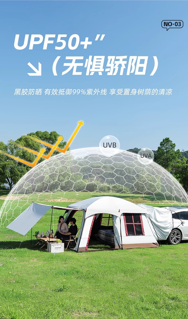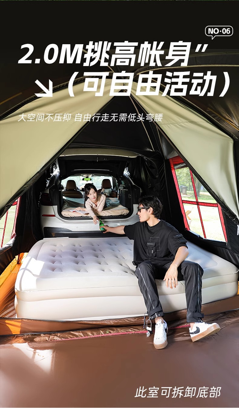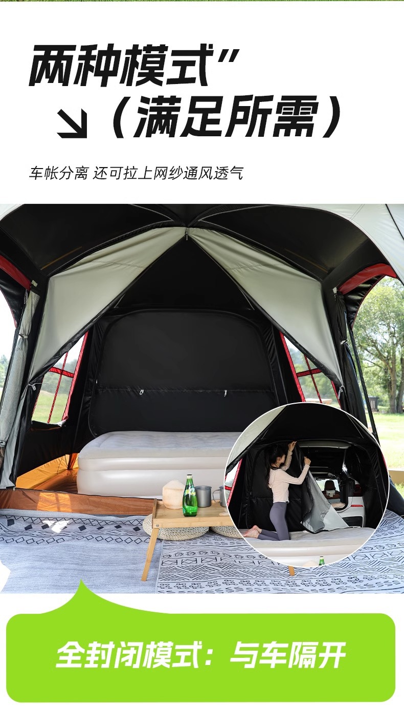후방 텐트 suv 크로스 컨트리 야외 캠핑 야간 캠핑 장비 전체 비바람 예방, 2 개의 방 및 1 개의 홀 확장 계정 세트