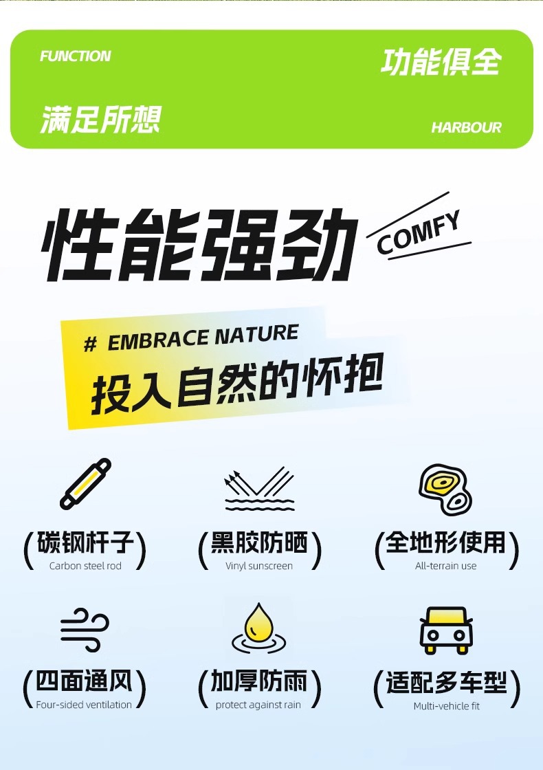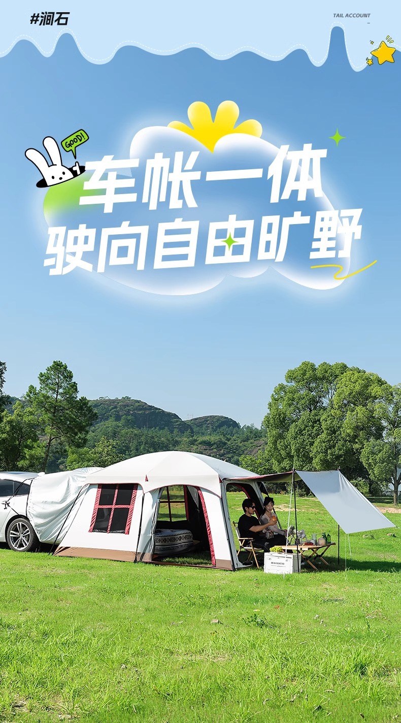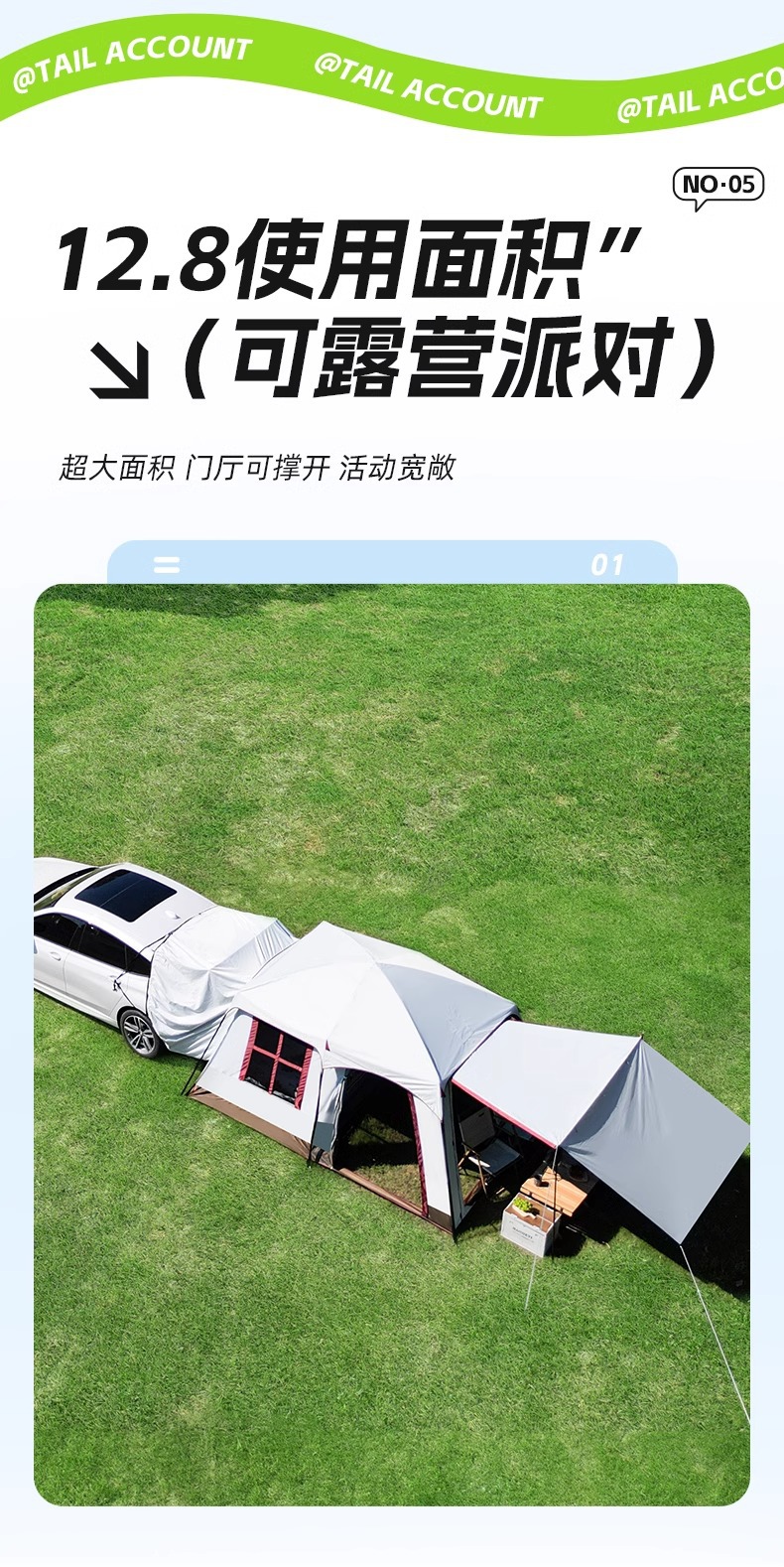 후방 텐트 suv 크로스 컨트리 야외 캠핑 야간 캠핑 장비 전체 비바람 예방, 2 개의 방 및 1 개의 홀 확장 계정 세트