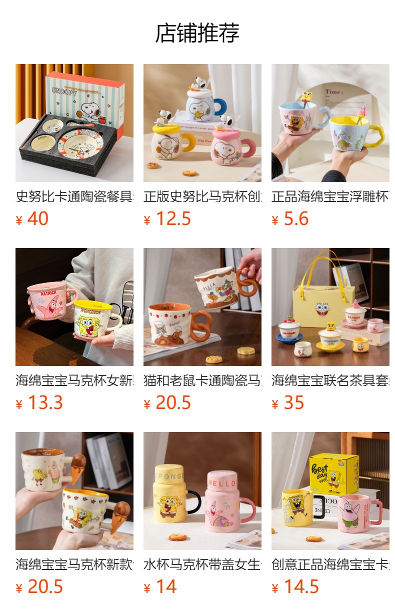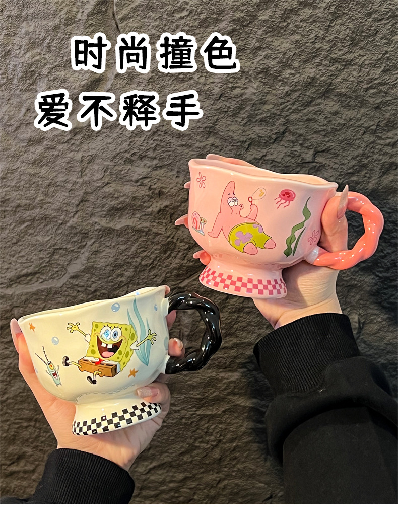 스폰지 밥 머그잔 세라믹 고블 귀여운 컵 커플 물 컵 여자 가정 어린이 커피 우유 컵스토어 가기