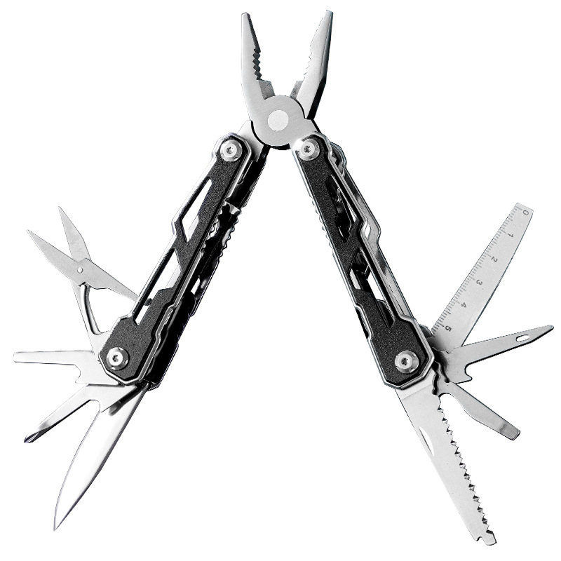黑色款:(16合一功能)【钳头(尖嘴钳、圆管钳、剪钳】【小刀】【一字螺丝刀(大、中、小)】