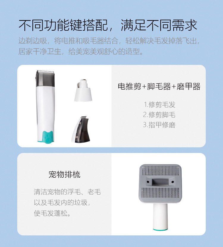 아마존 7-in -1 다기능 애완 동물 헤어 컨디셔너 개 고양이 진공 세트 국경 간 트리밍 및 면도스토어 가기