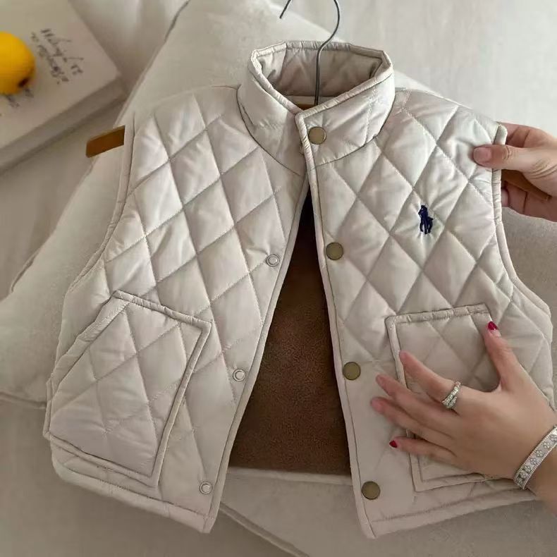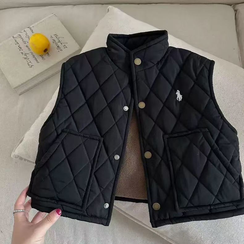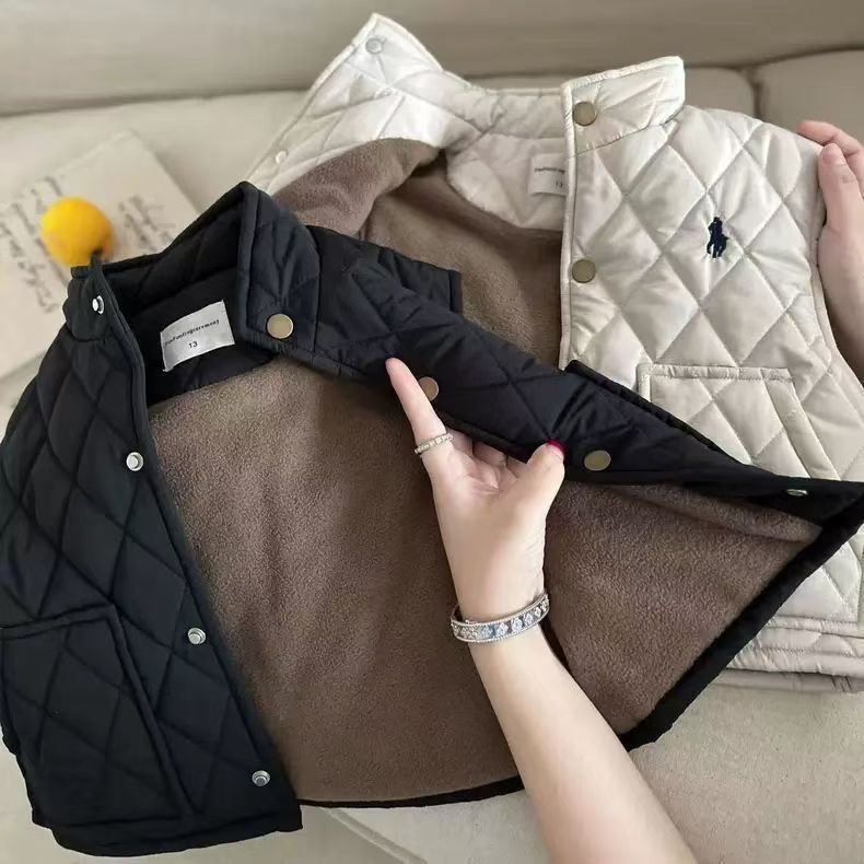어린 이용 면화 조끼 2024 가을과 겨울 아기의 단단한 어깨 구멍이있는 새 소년 격자 무늬 탑스토어 가기