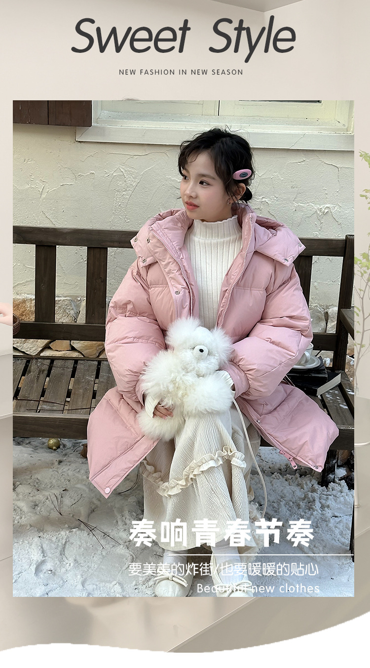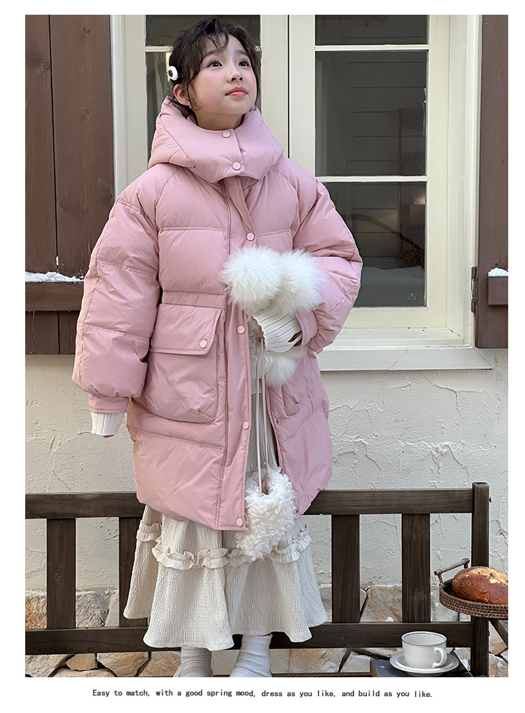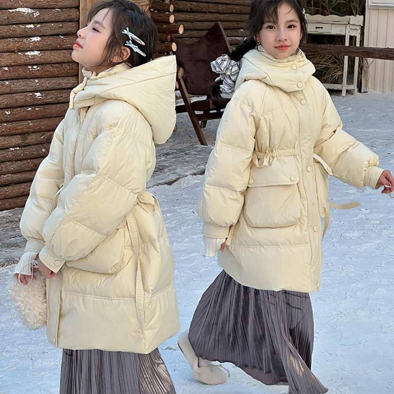 어린이 다운 재킷 겨울 2024 새로운 흰 오리 소녀 겨울 긴 코트 두껍게 한 어린이 코트 도매스토어 가기