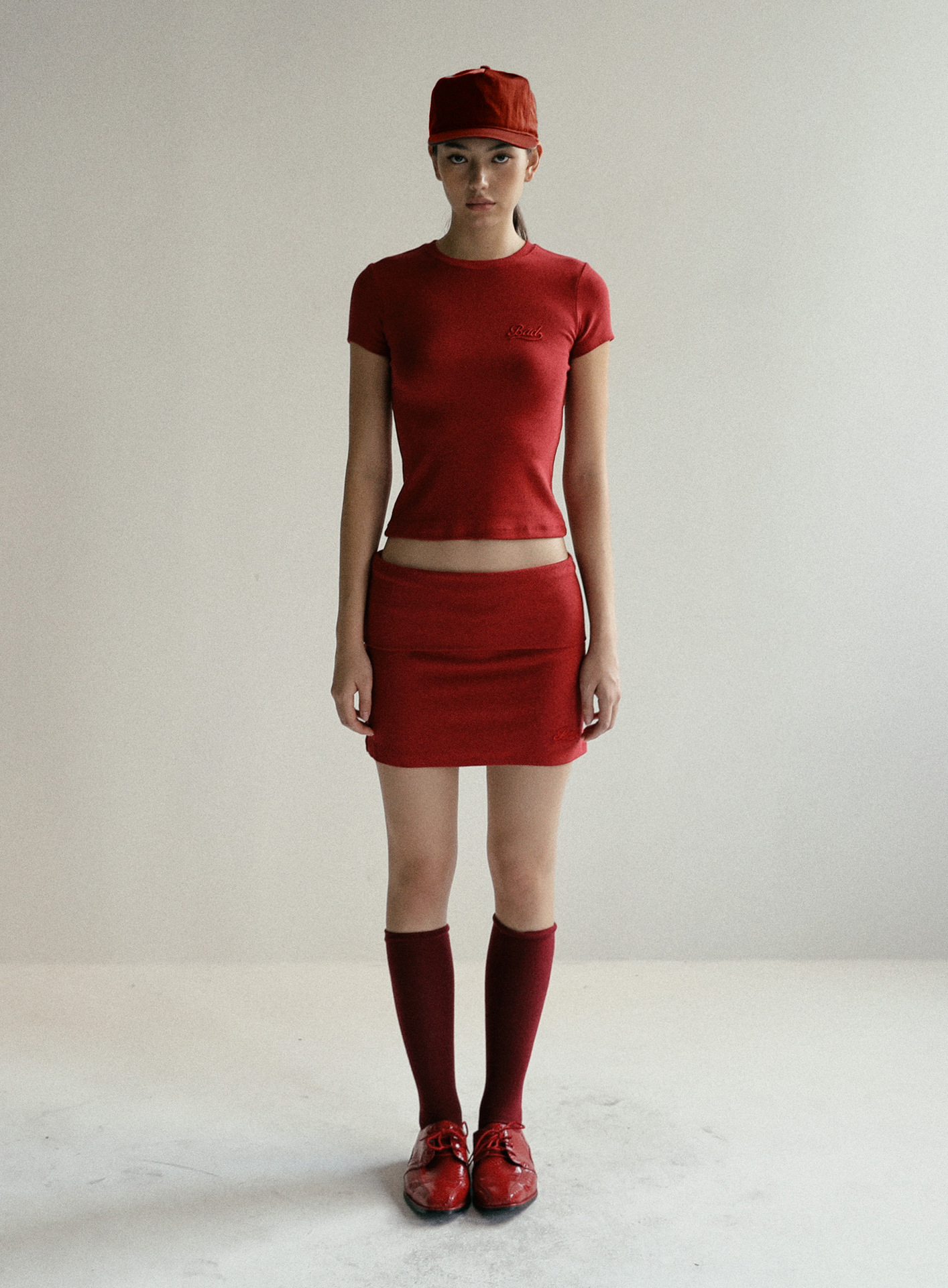 바드 블러드 소프트 폴딩 미니 스커트 여성용 카민 핫 걸스 섹시한 자수 슬림 핏 레드 새로운 짧은 치마