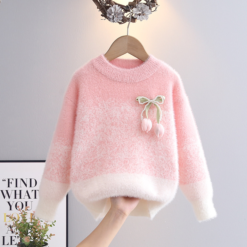 소녀 스웨터 가을과 겨울 새로운 두꺼운 서양식 중년 아동베이스 셔츠 그라디언트 색상 변경 라운드 넥 튤립 스웨터 트렌디스토어 가기