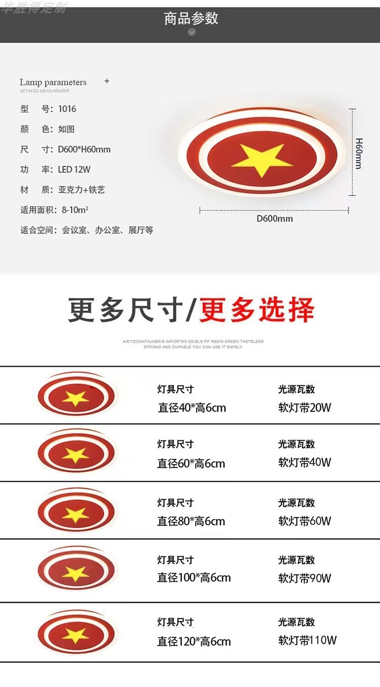 圆形米灯吸顶灯五角星会议室1.2尺寸办公大会堂灯具人民圆大138RMB立即购买>