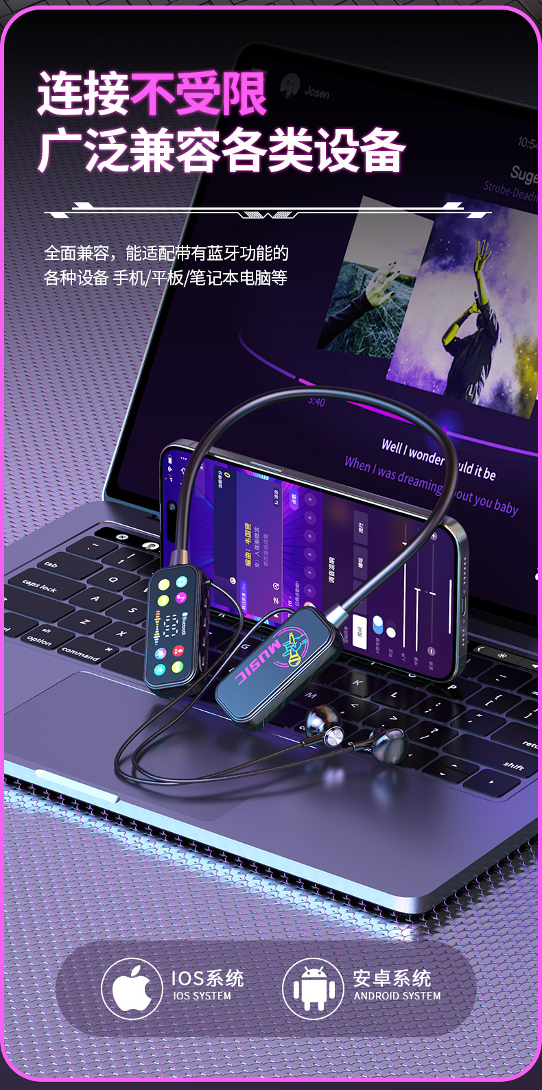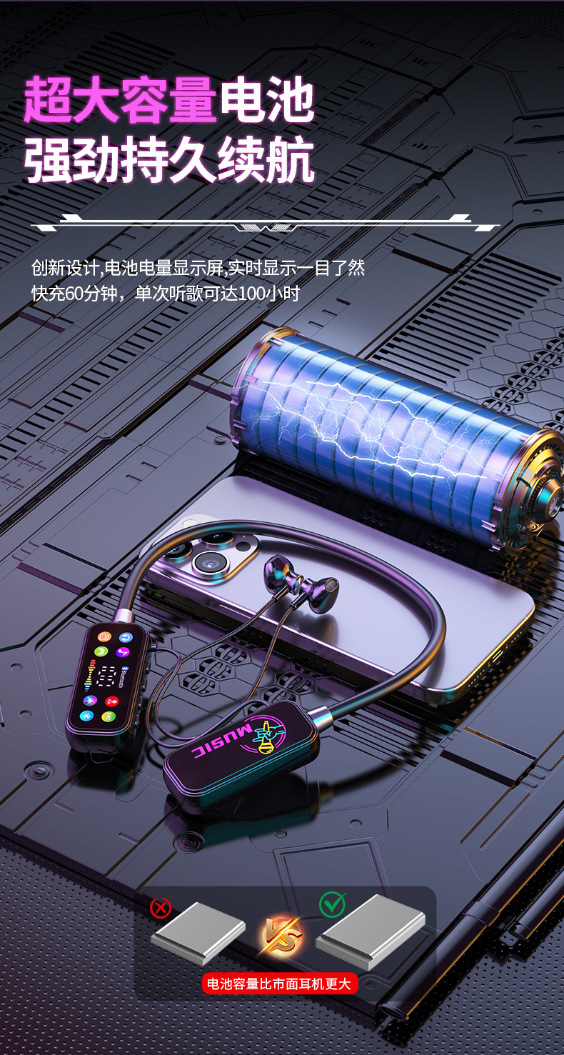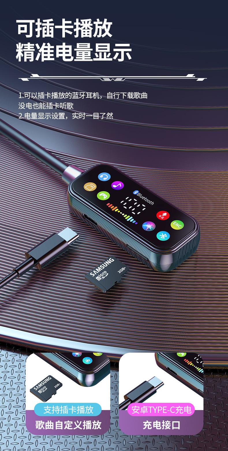 K 노래 노래 귀 반환 폭발 컬러 스크린 목 매달려 무선 블루투스 헤드셋 컬러 인쇄 디지털 디스플레이 슈퍼 긴 대기 유니버설스토어 가기