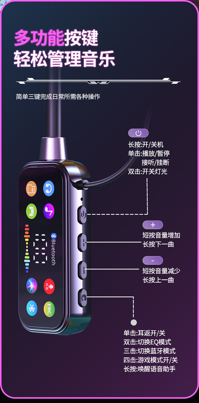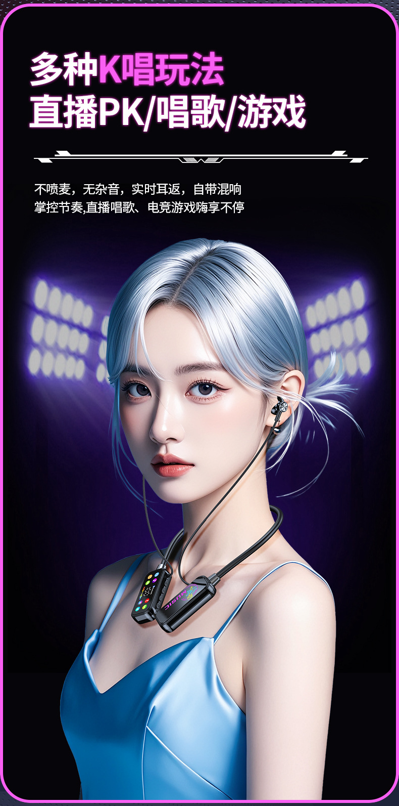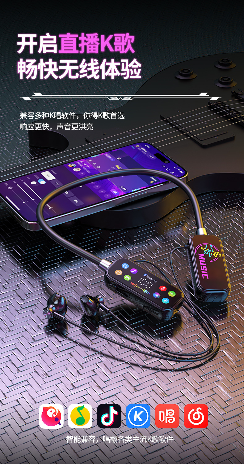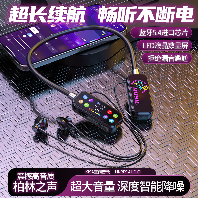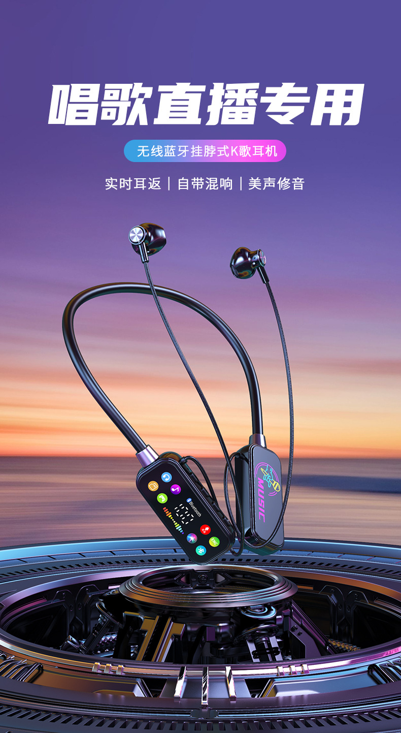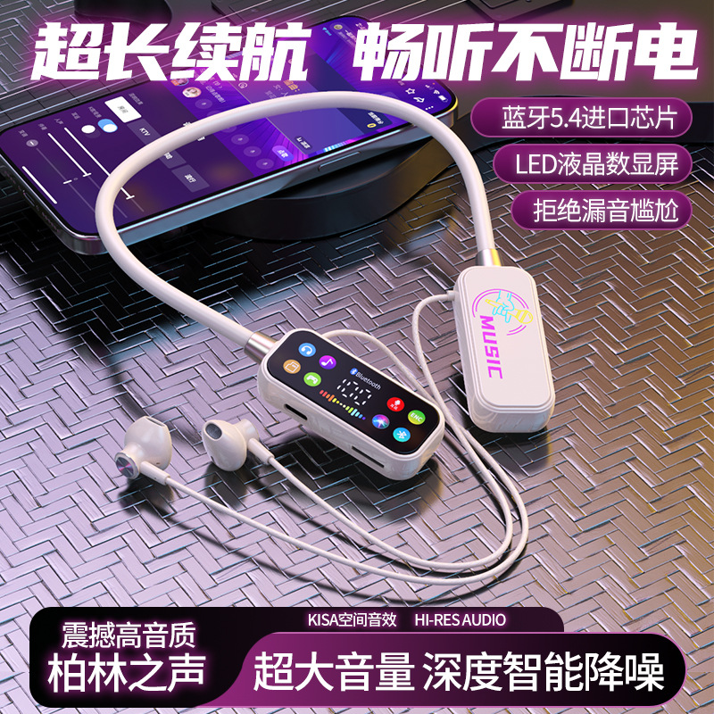 K 노래 노래 귀 반환 폭발 컬러 스크린 목 매달려 무선 블루투스 헤드셋 컬러 인쇄 디지털 디스플레이 슈퍼 긴 대기 유니버설