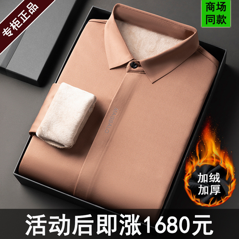특별 제공 고급 뽕나무 실크 긴팔 셔츠 겨울 남자 기모 두껍게 다림질 셔츠스토어 가기