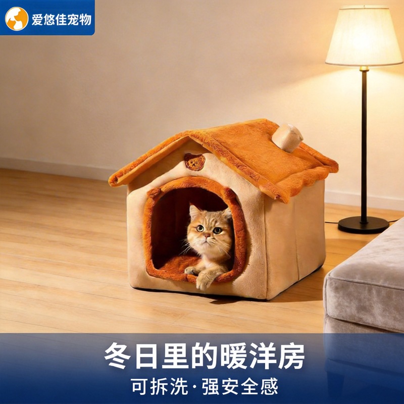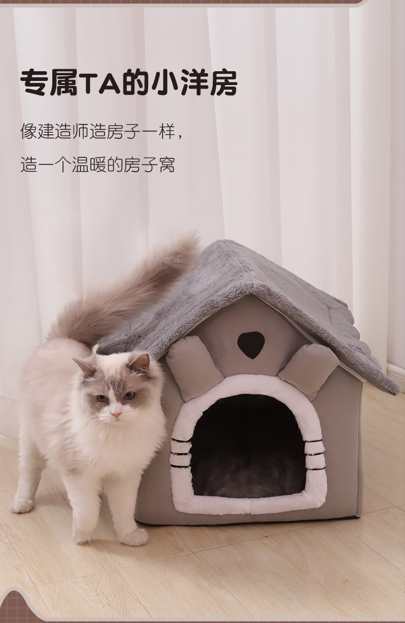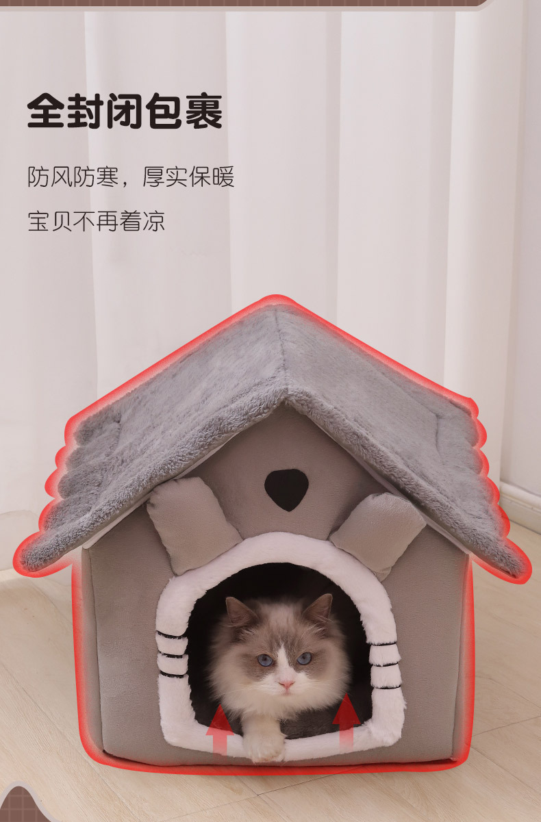 고양이 집, 겨울에도 따뜻하고 사계절 사용 가능, 밀폐형 빌라, 탈부착 및 세탁 가능, 애완동물 안전한 집, 강아지 집, 고양이 케이지