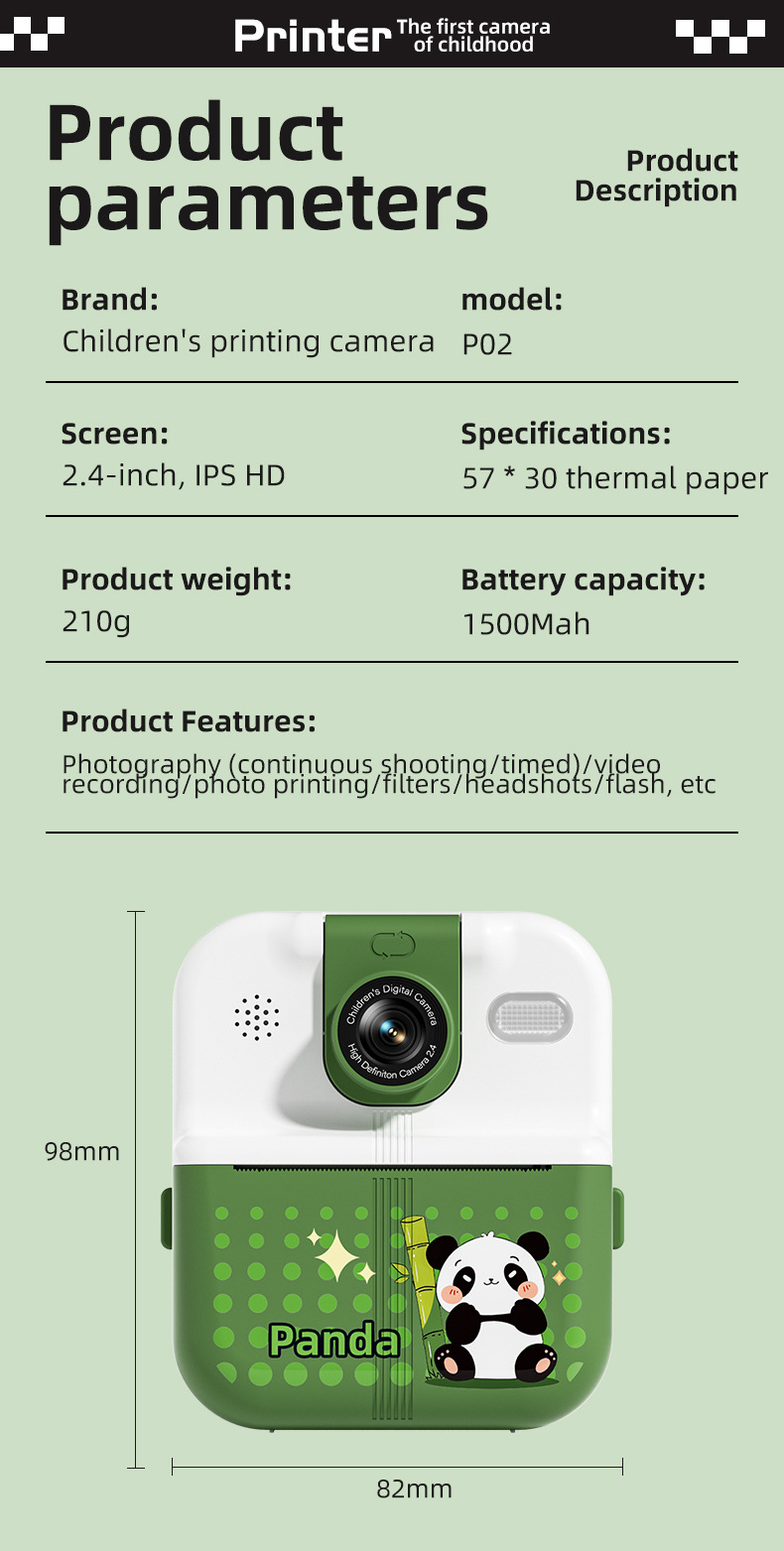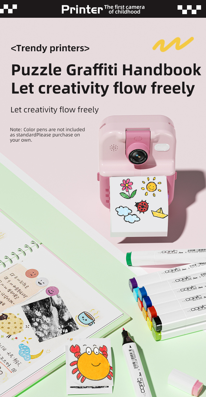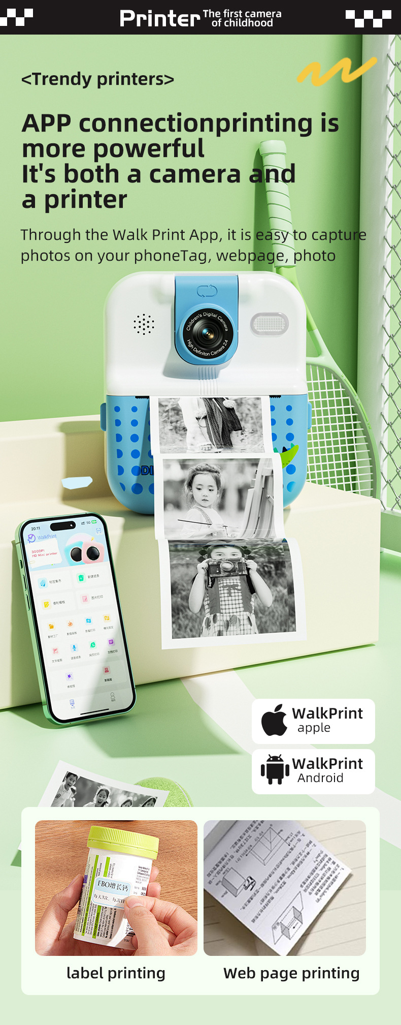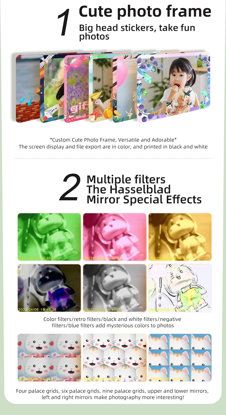 产品功能:蓝牙 APP连接 DIY大头贴、相框 多种滤镜、即拍即得