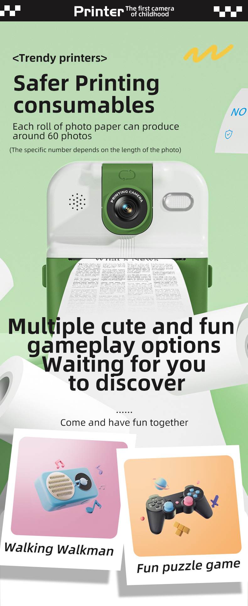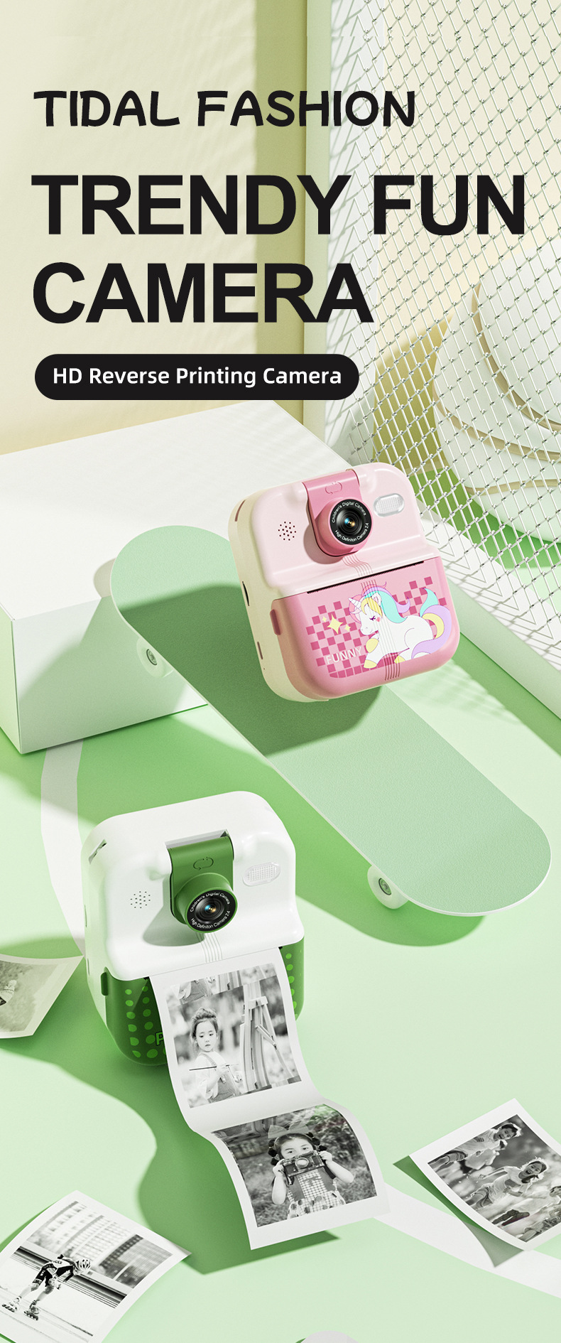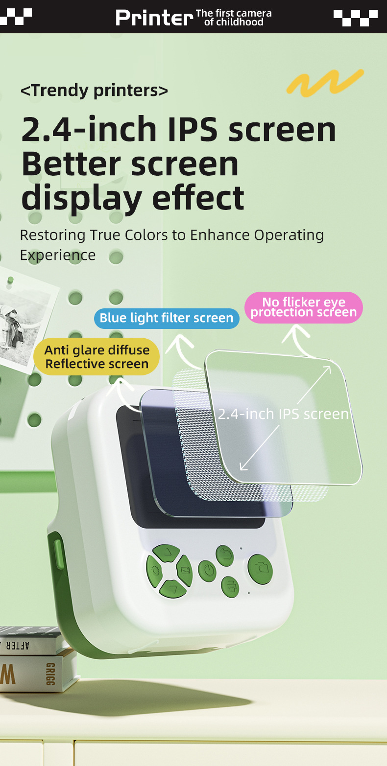 产品功能:蓝牙 APP连接 DIY大头贴、相框 多种滤镜、即拍即得