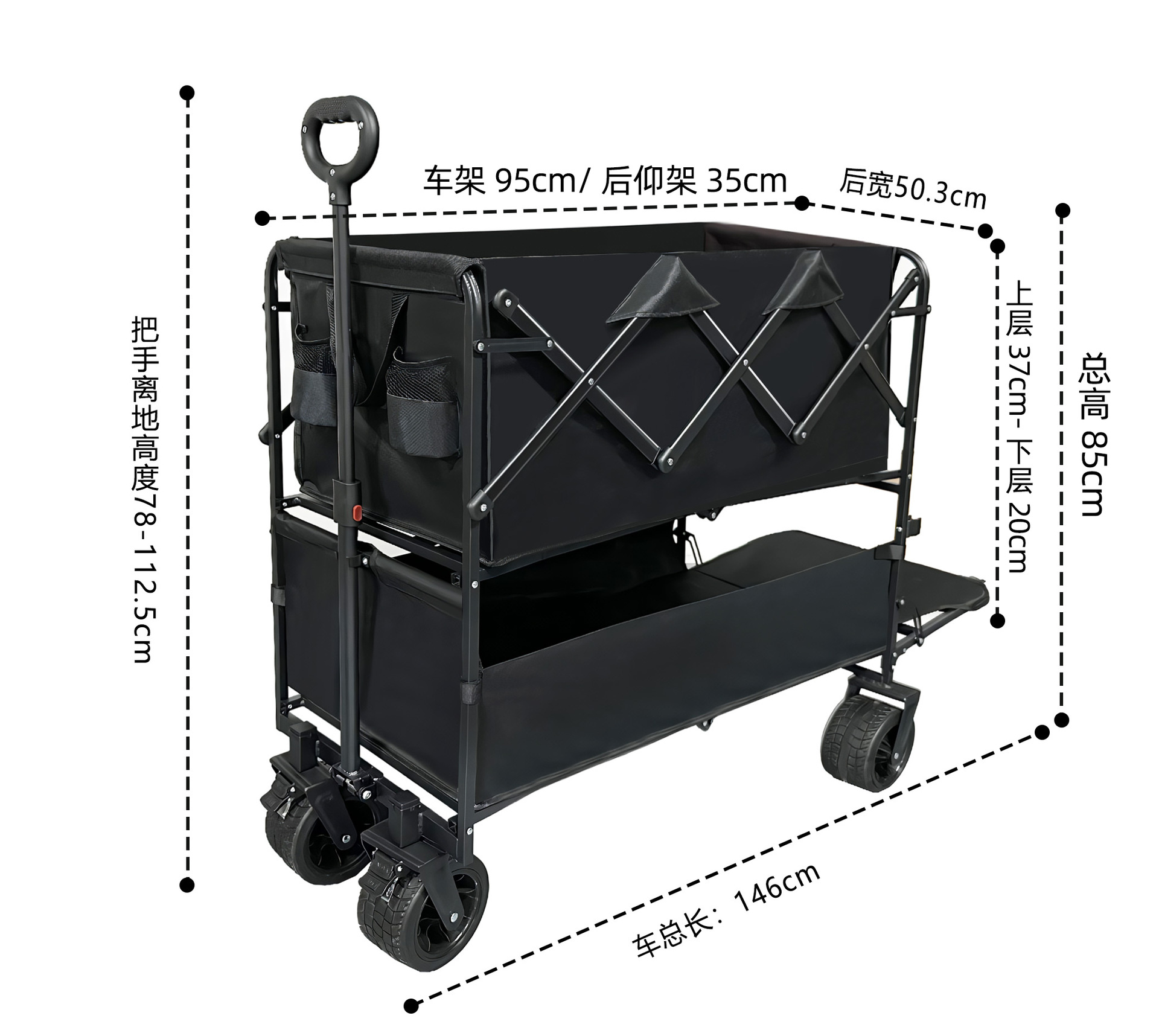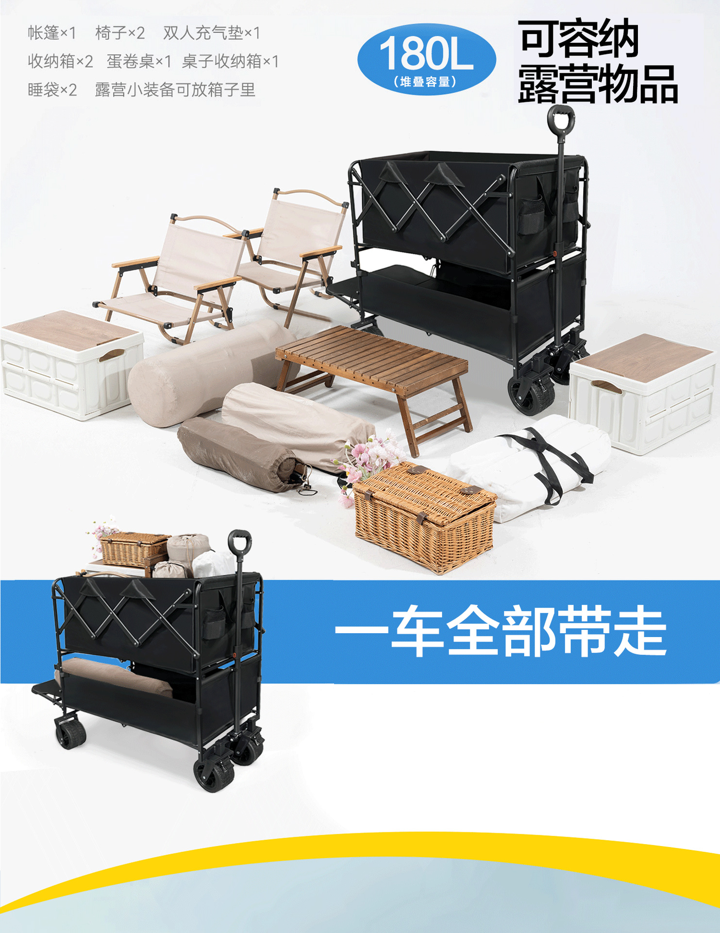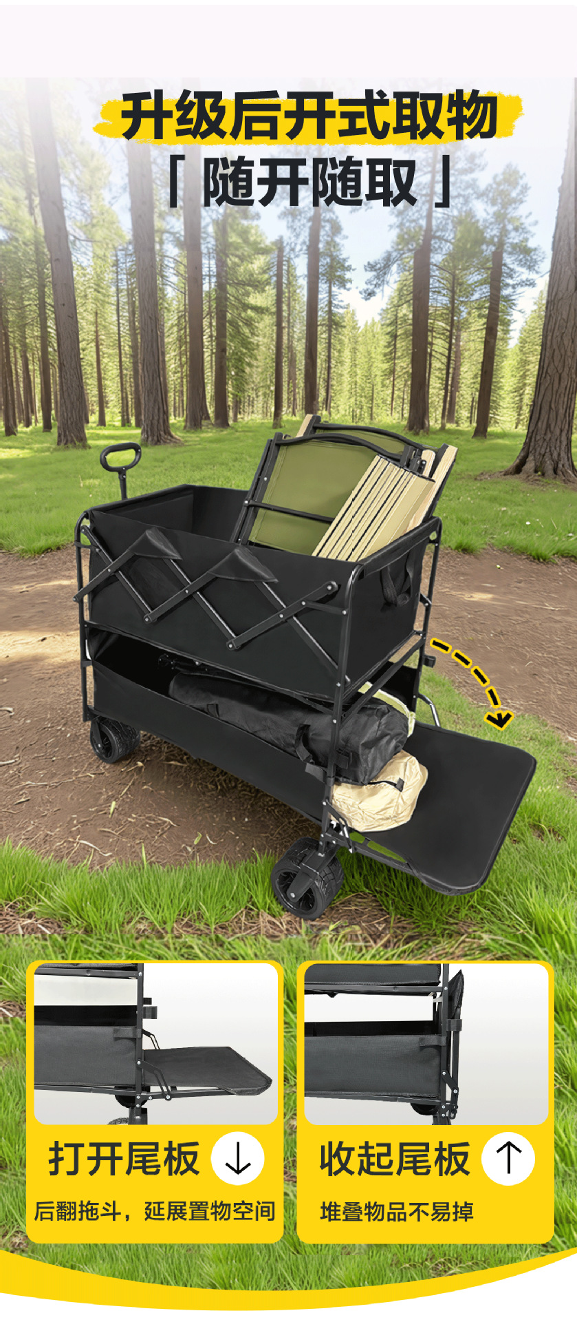 야외 더블 데크 캠핑 카트 대용량 캠핑카 캠핑카 장비 공급을위한 대외 무역