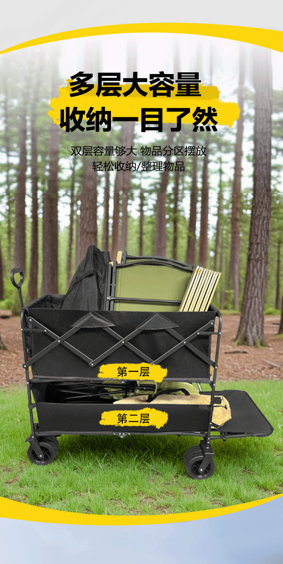 야외 더블 데크 캠핑 카트 대용량 캠핑카 캠핑카 장비 공급을위한 대외 무역스토어 가기