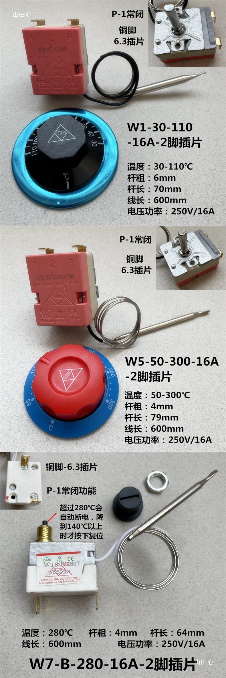 노브 다이얼 온도 조절기 튀김기 전기 튀김기 온도 조절 스위치 온도 조절기 30-110도 50-300