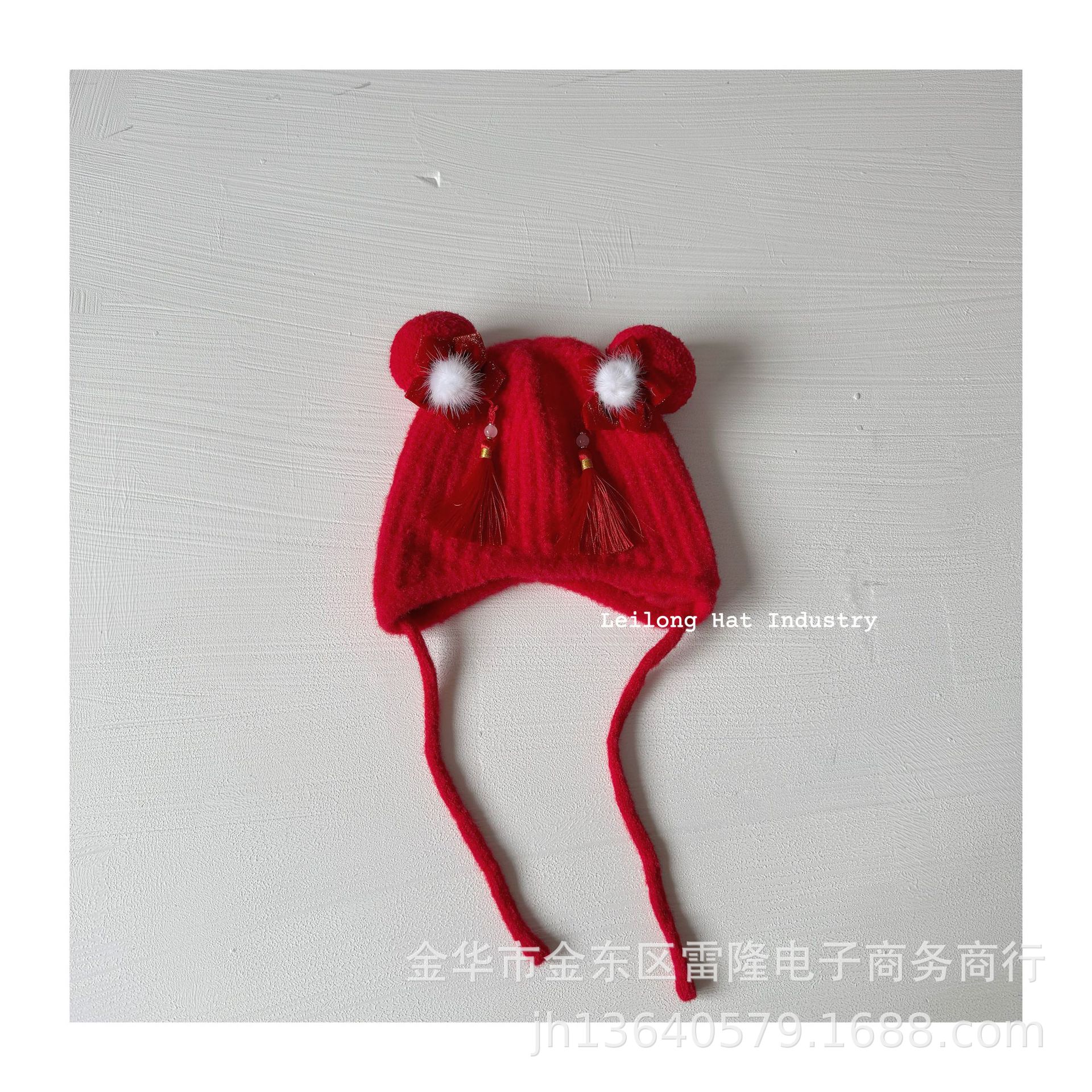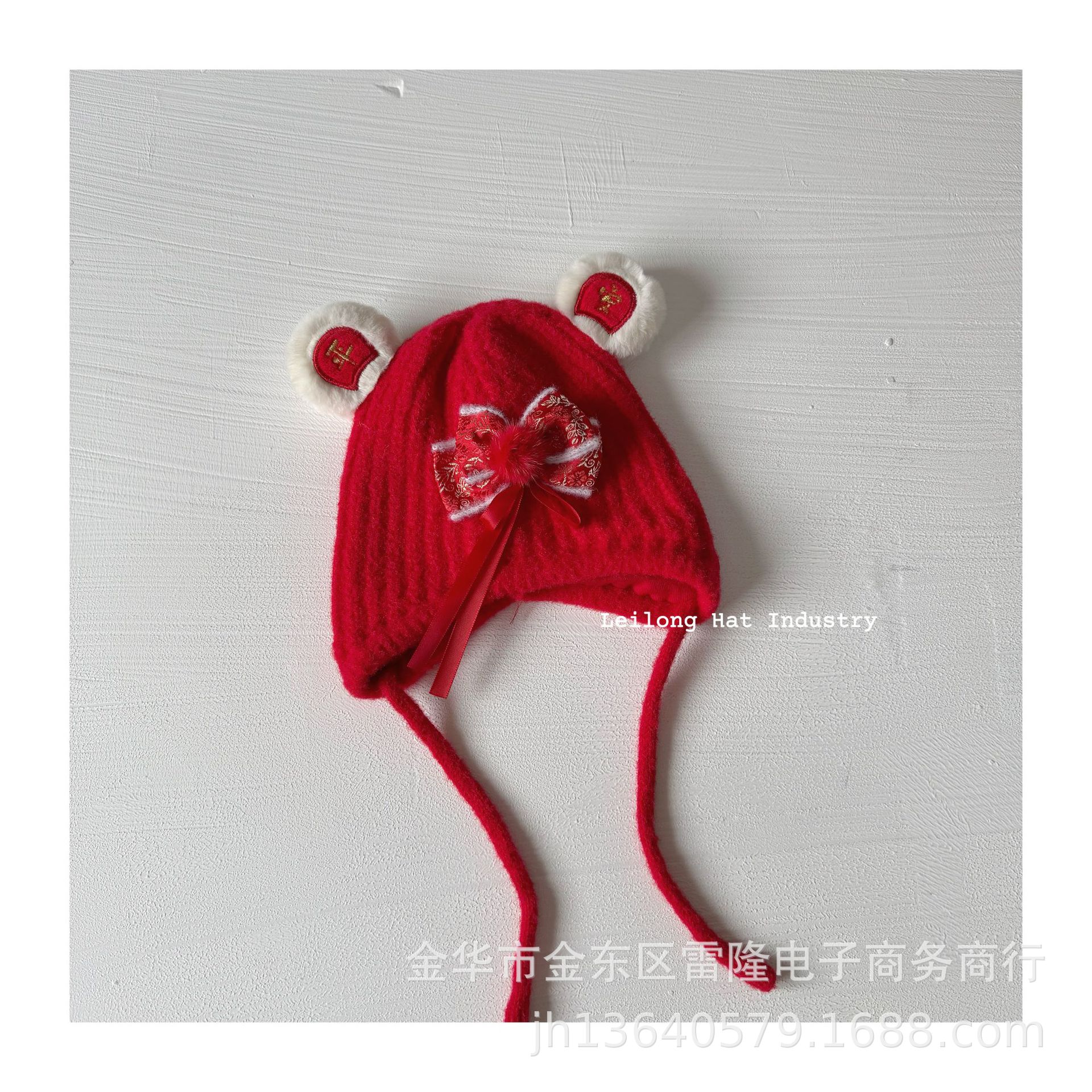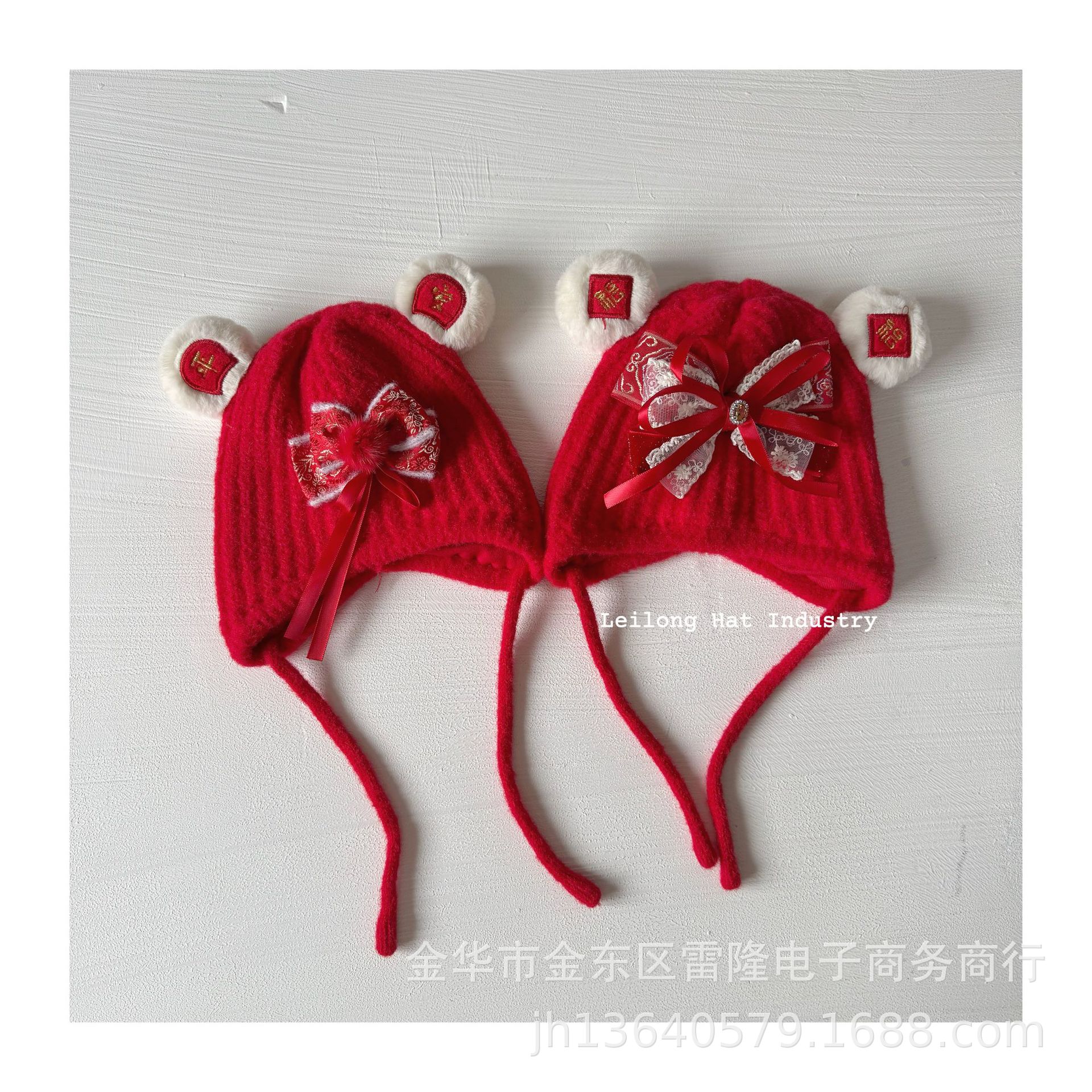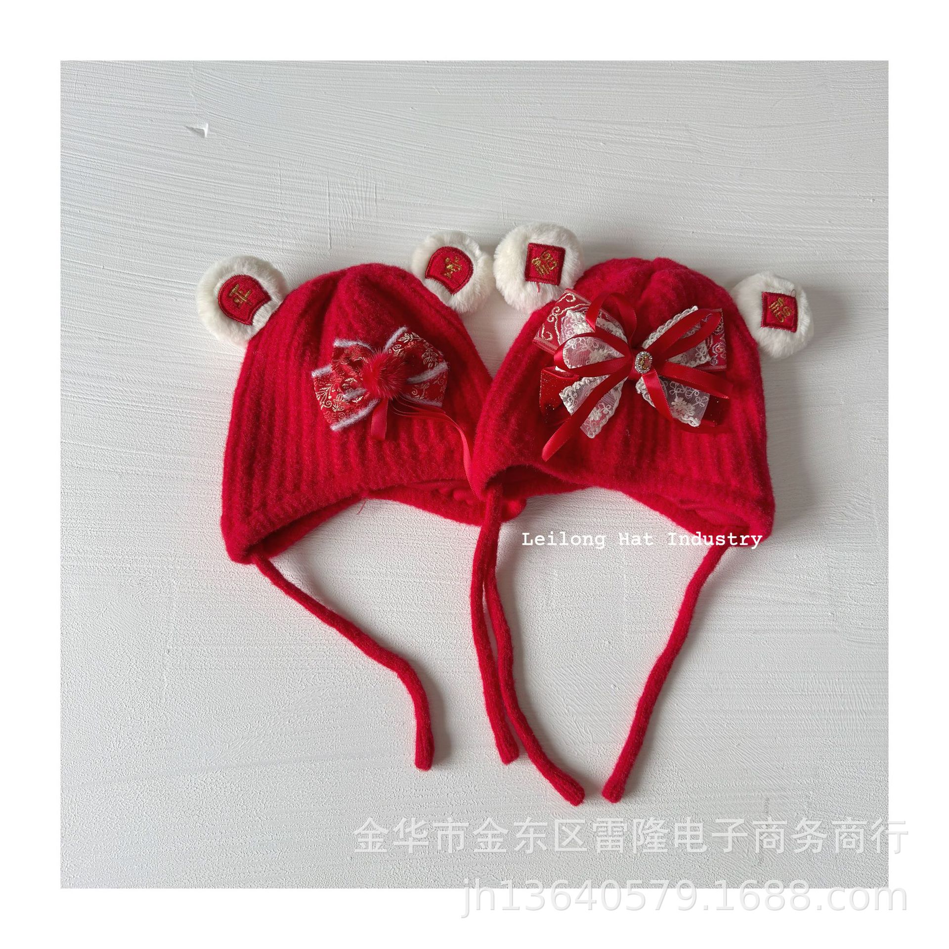 새해 어린이 가을 겨울 양모 모자 붉은 새해 축제 귀 보호 모자 남녀 니트 귀 보호 양모 모자스토어 가기