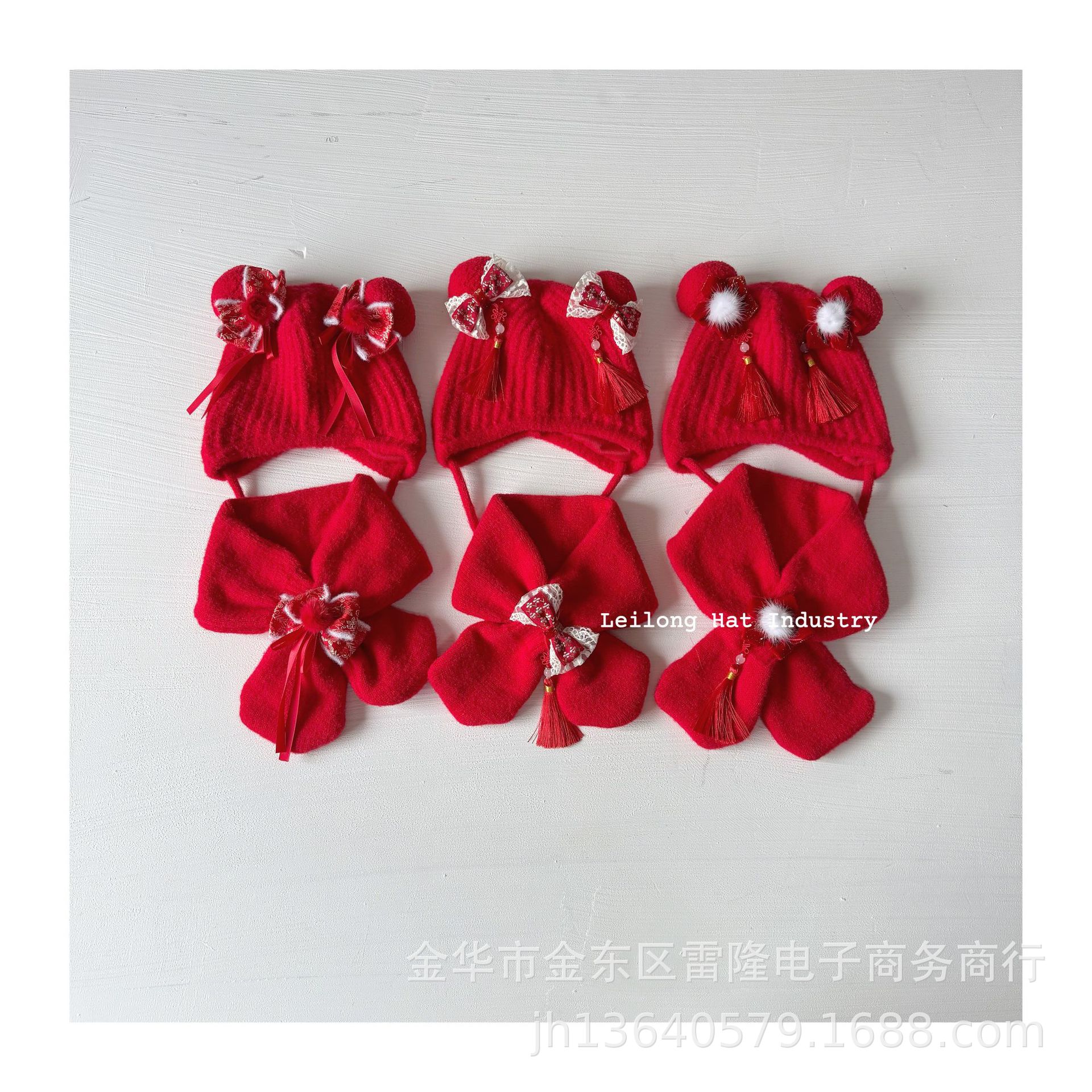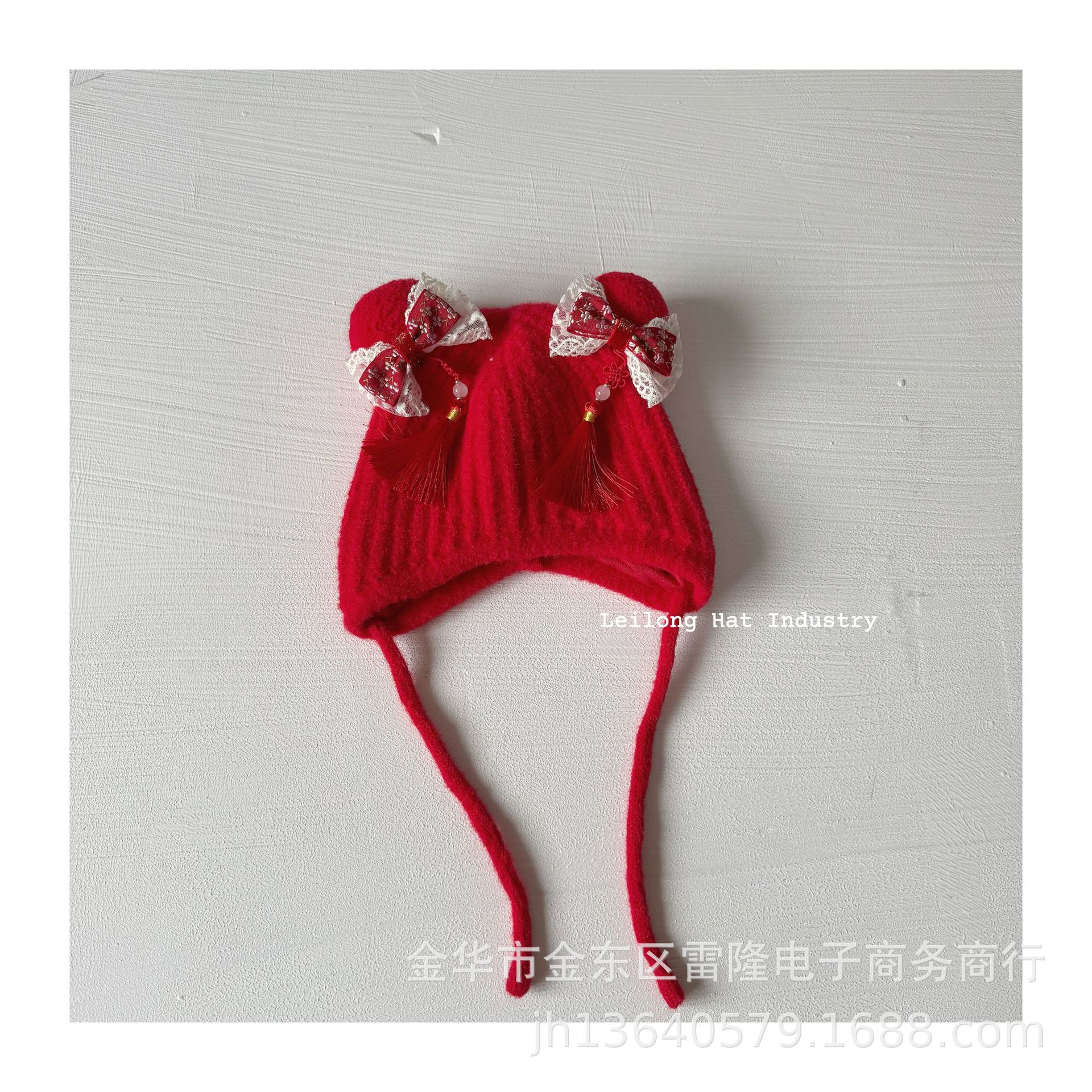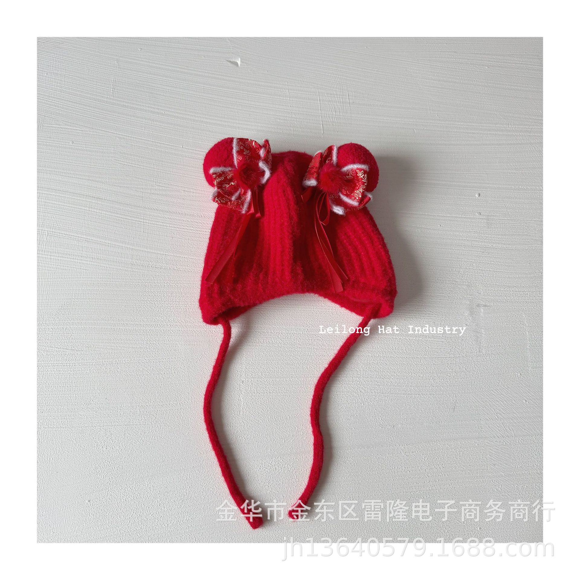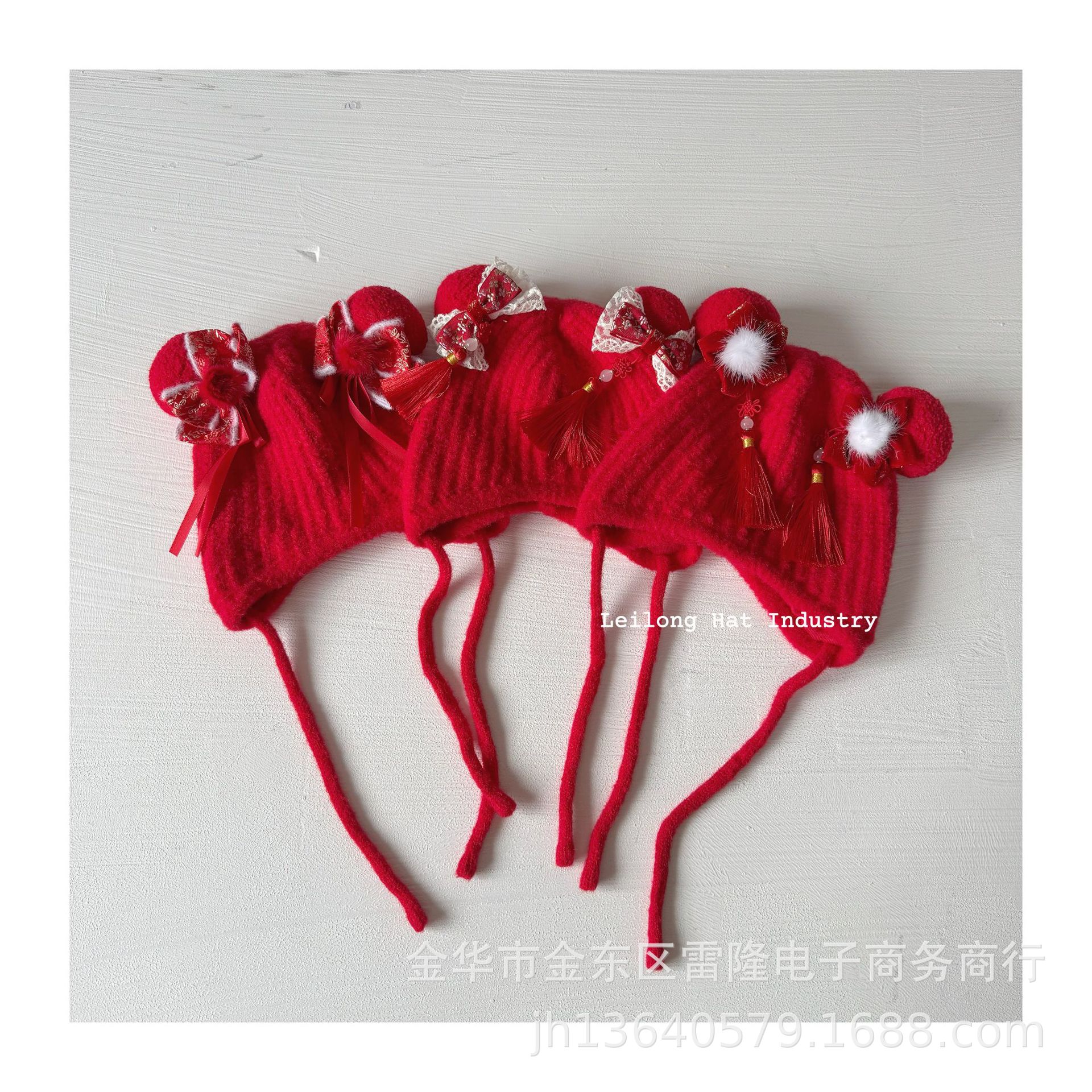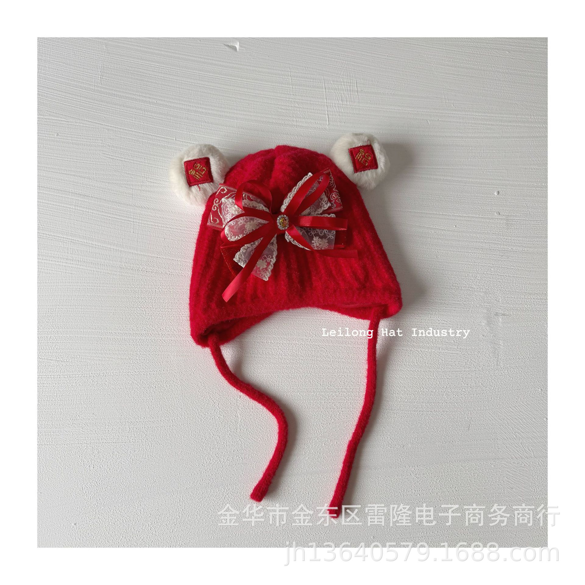 새해 어린이 가을 겨울 양모 모자 붉은 새해 축제 귀 보호 모자 남녀 니트 귀 보호 양모 모자스토어 가기