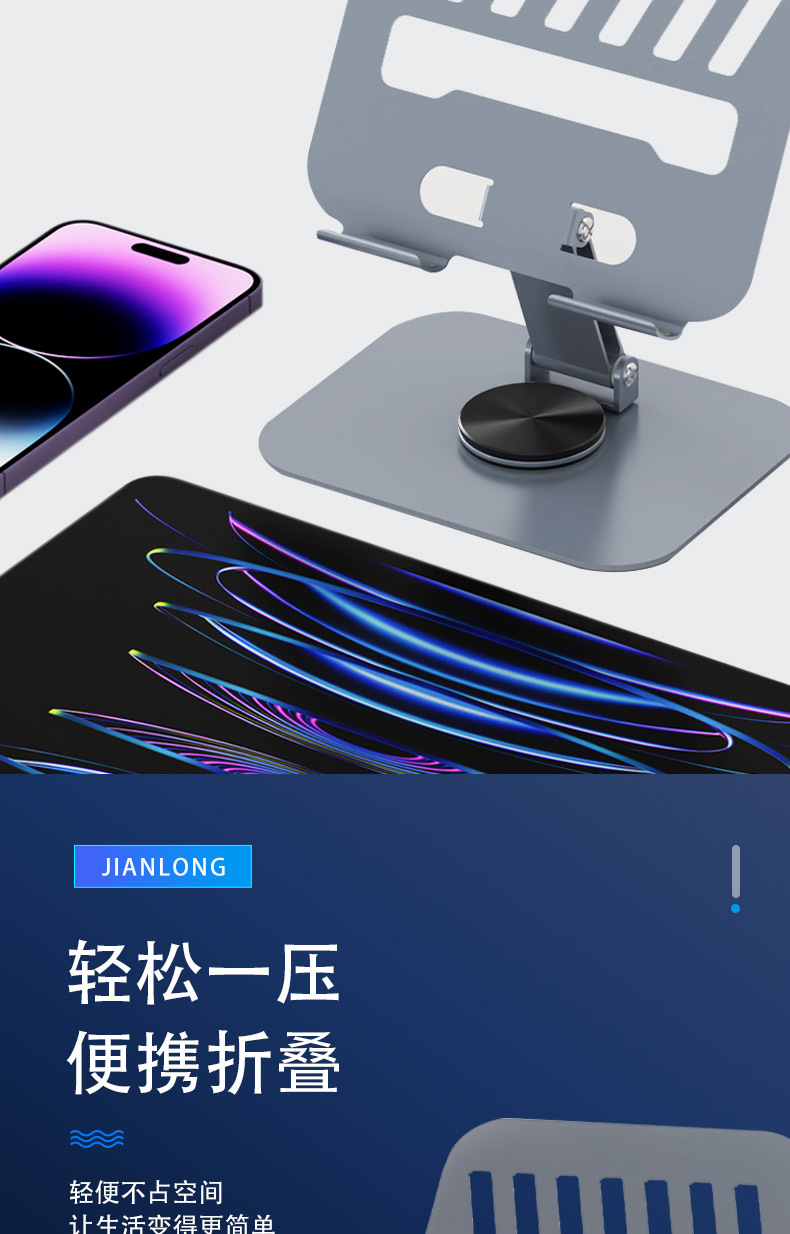 새로운 노트북 태블릿 스탠드 데스크탑 금속 높이 조절 접이식 360 회전 패드 휴대 전화 플랫스토어 가기