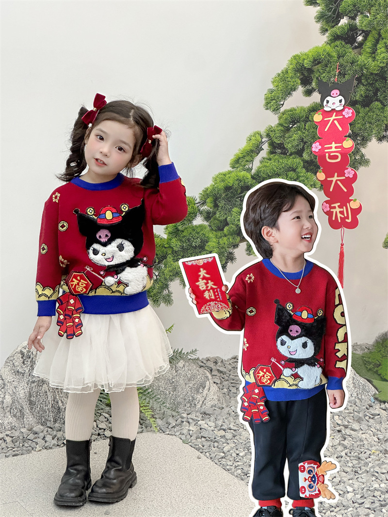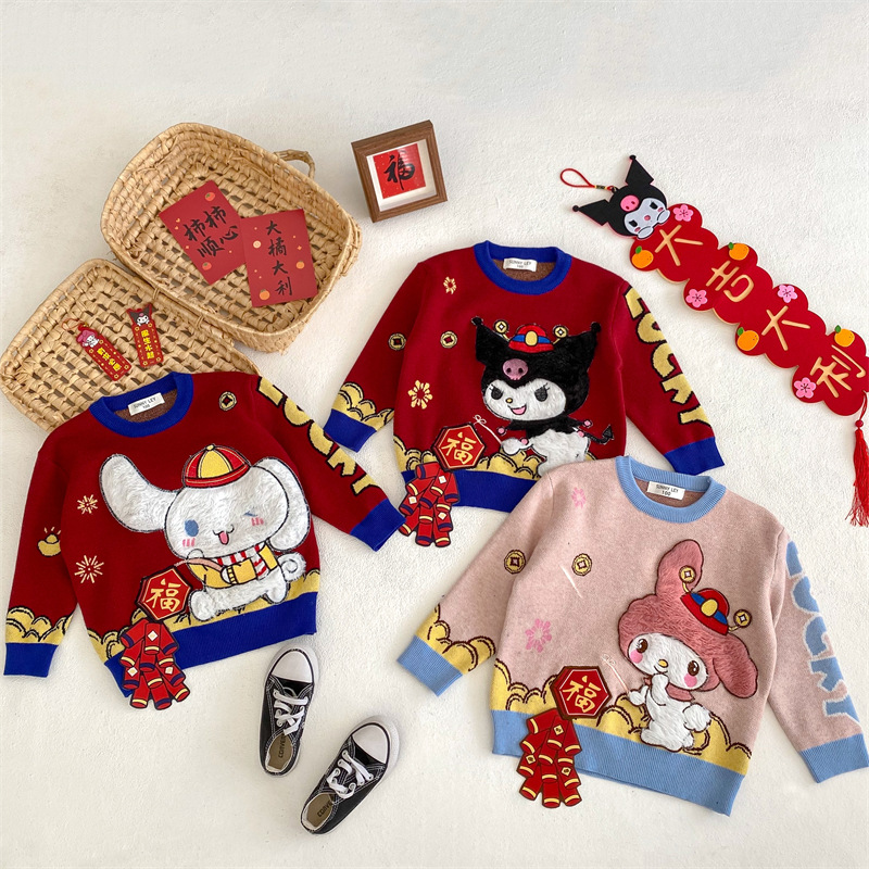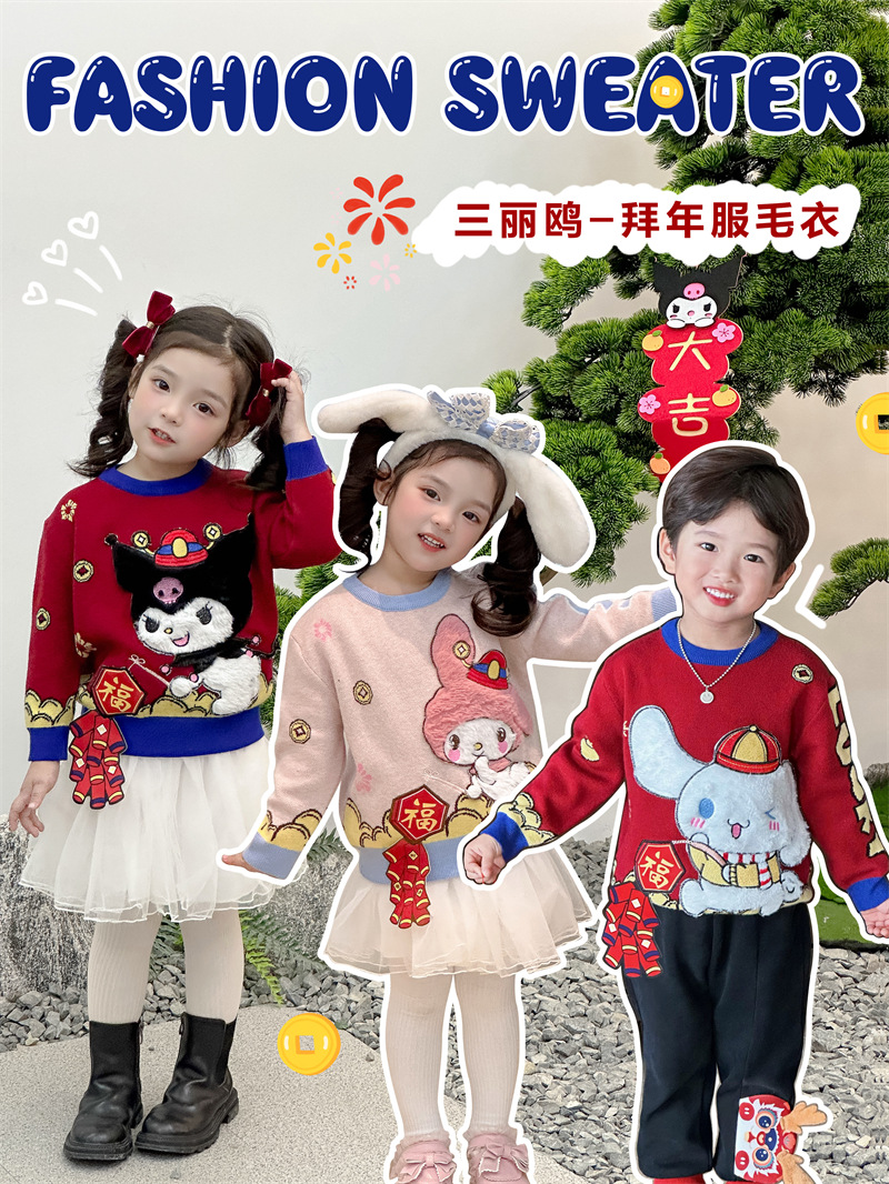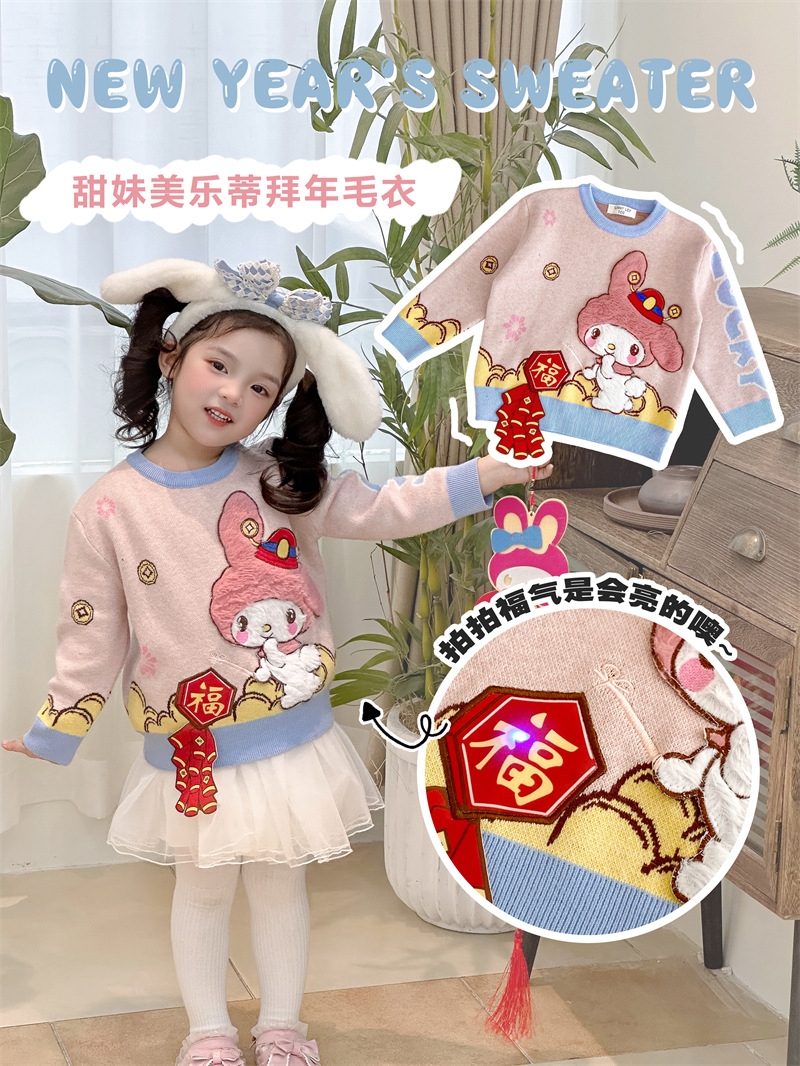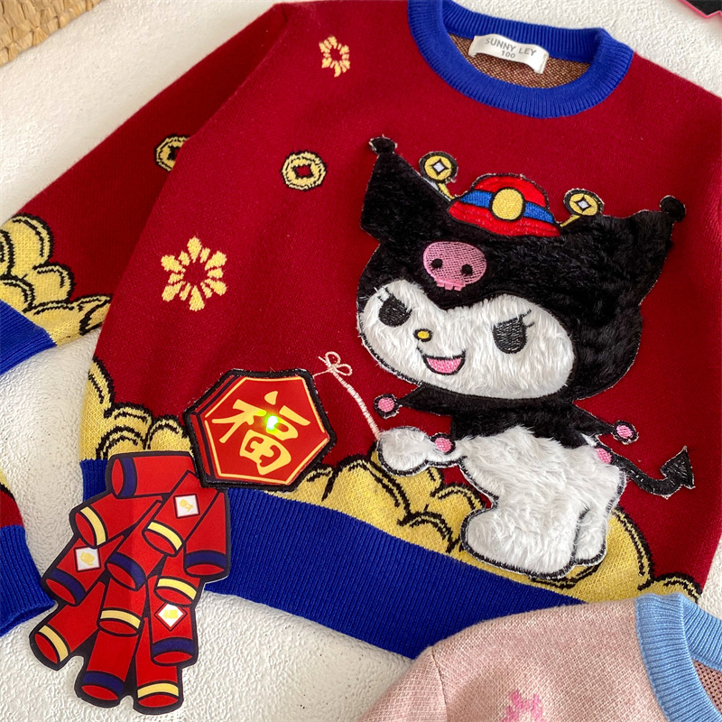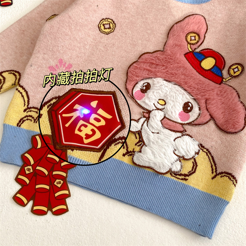 2024 가을과 겨울 새로운 산리오 스테레오 플래시 라이트 왕카이 년 스웨터