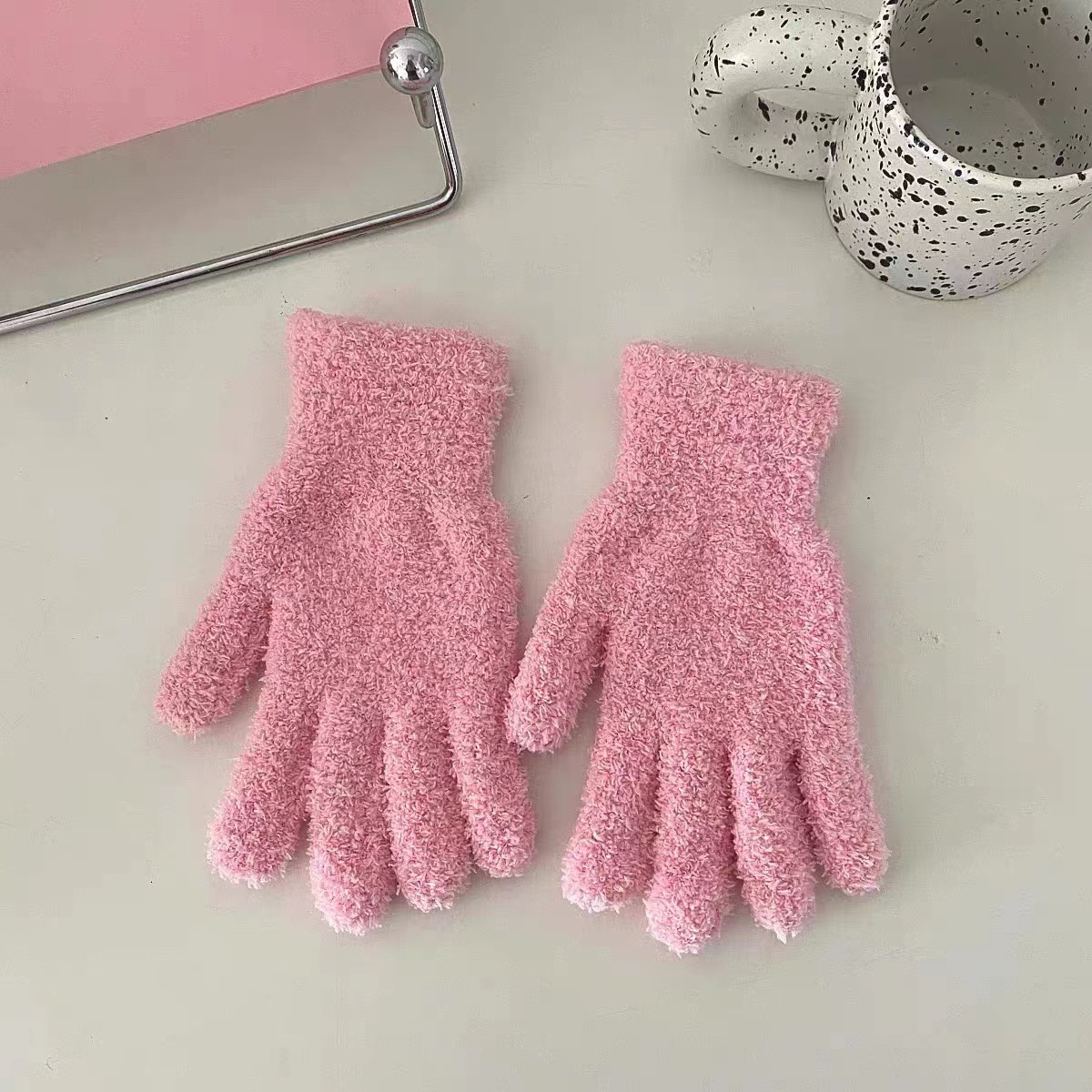 • 라이트 플레이트 산호 벨벳 장갑 [핑크]
