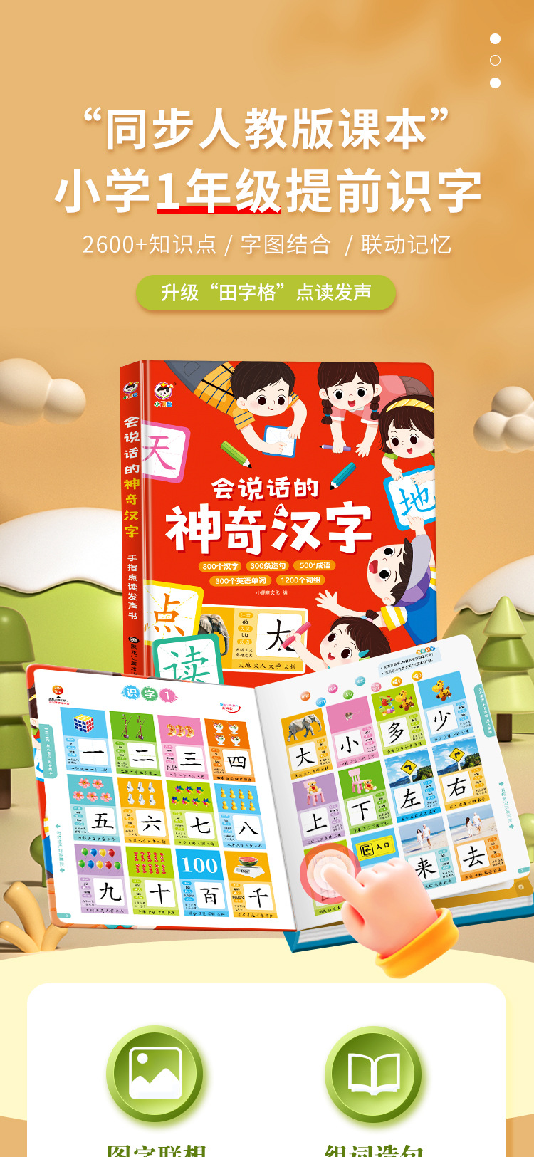 말하기 어린이 문해력 왕 300 단어 포인트 읽기 음성 책 조기 교육 손가락 포인트 책 장난감 학습 기계스토어 가기