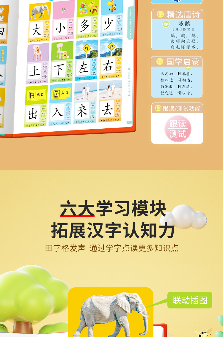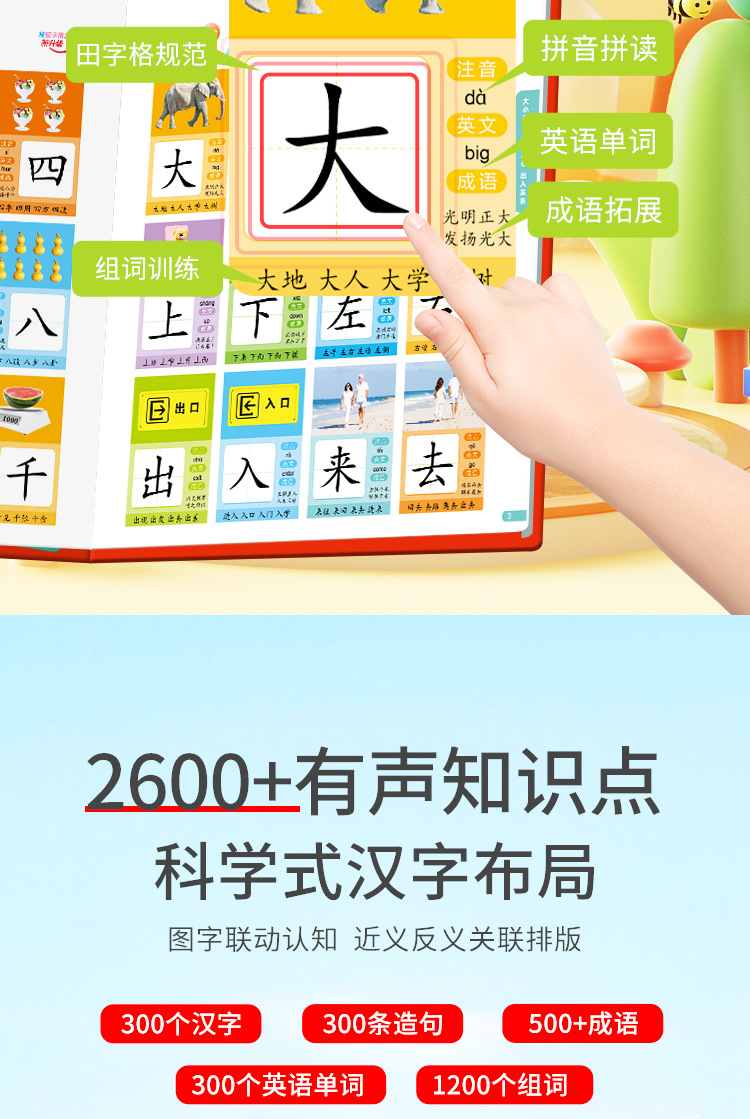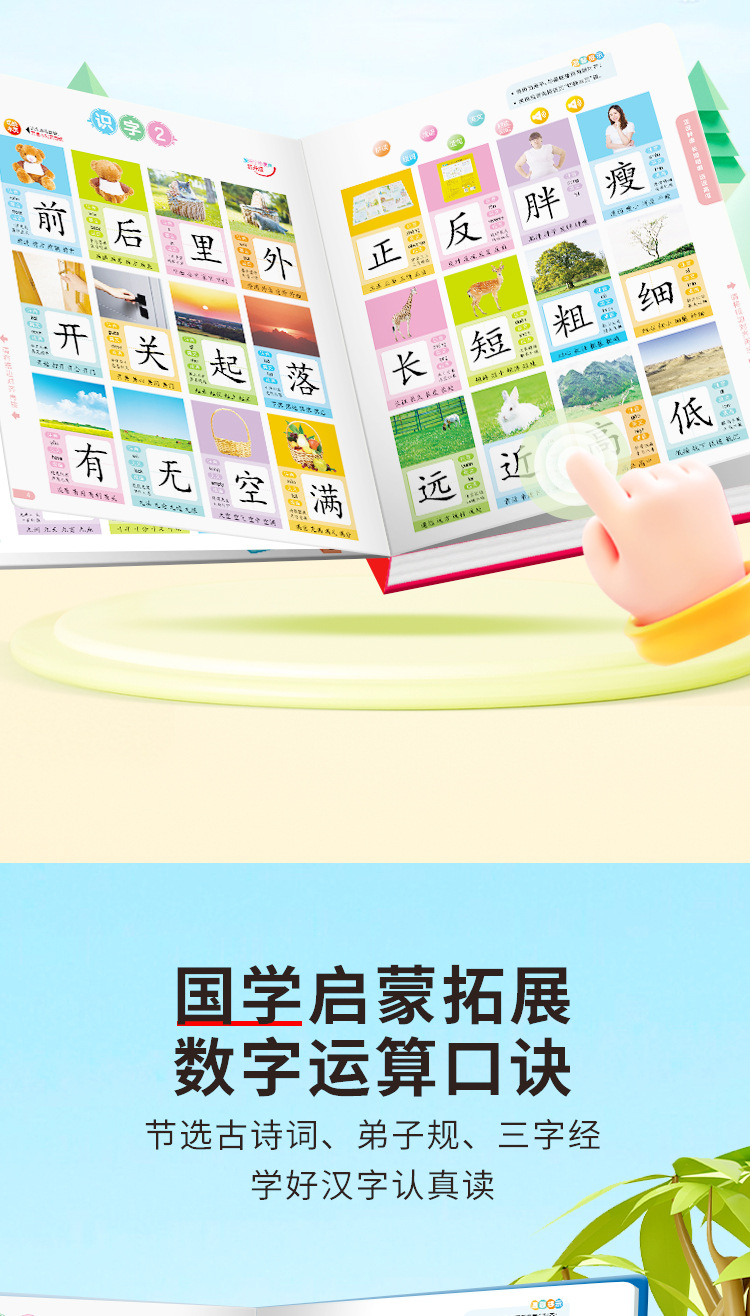 말하기 어린이 문해력 왕 300 단어 포인트 읽기 음성 책 조기 교육 손가락 포인트 책 장난감 학습 기계