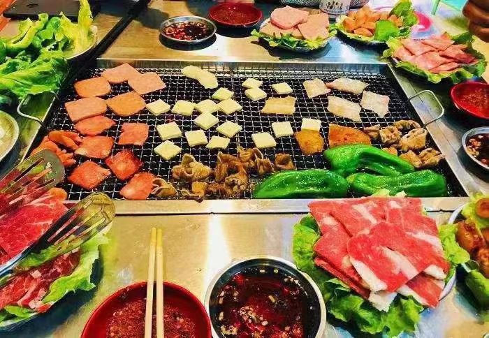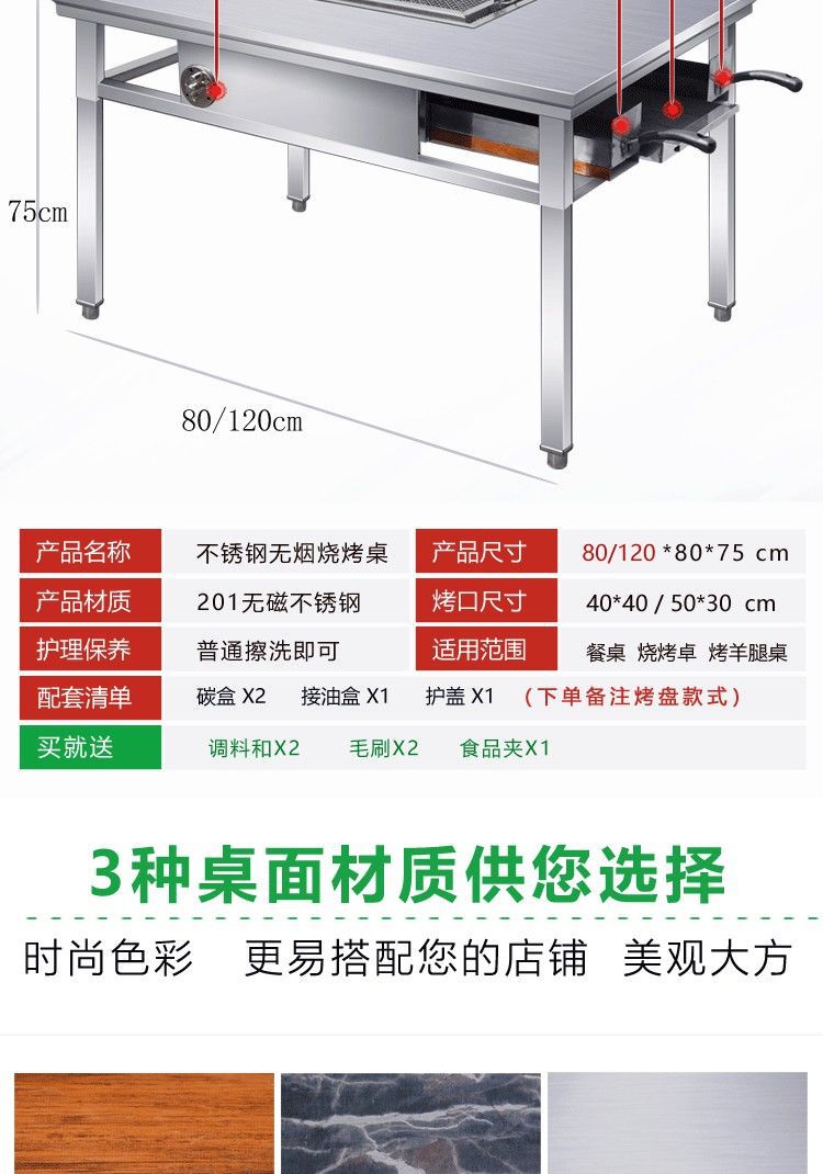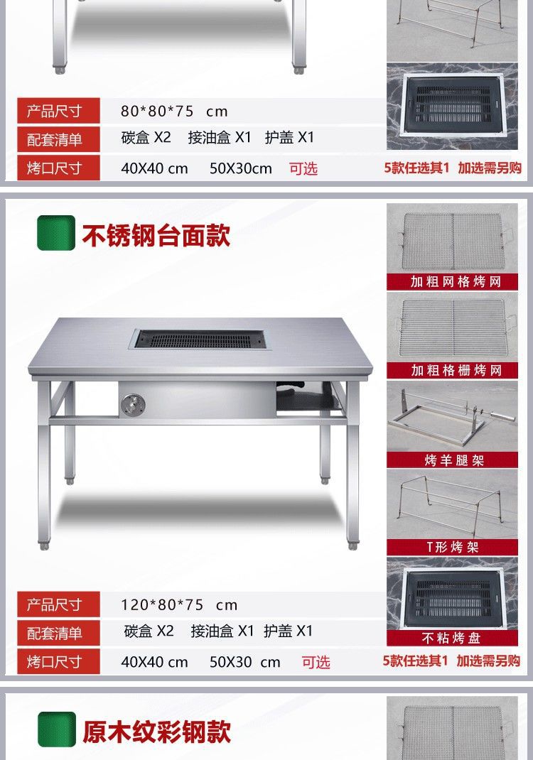 상업용 무연 스테인레스 스틸 바베큐 테이블 셀프 서비스 숯 베이킹 및 세척을위한 양고기 오븐의 야외 스톨 가정용 바베큐 다리스토어 가기