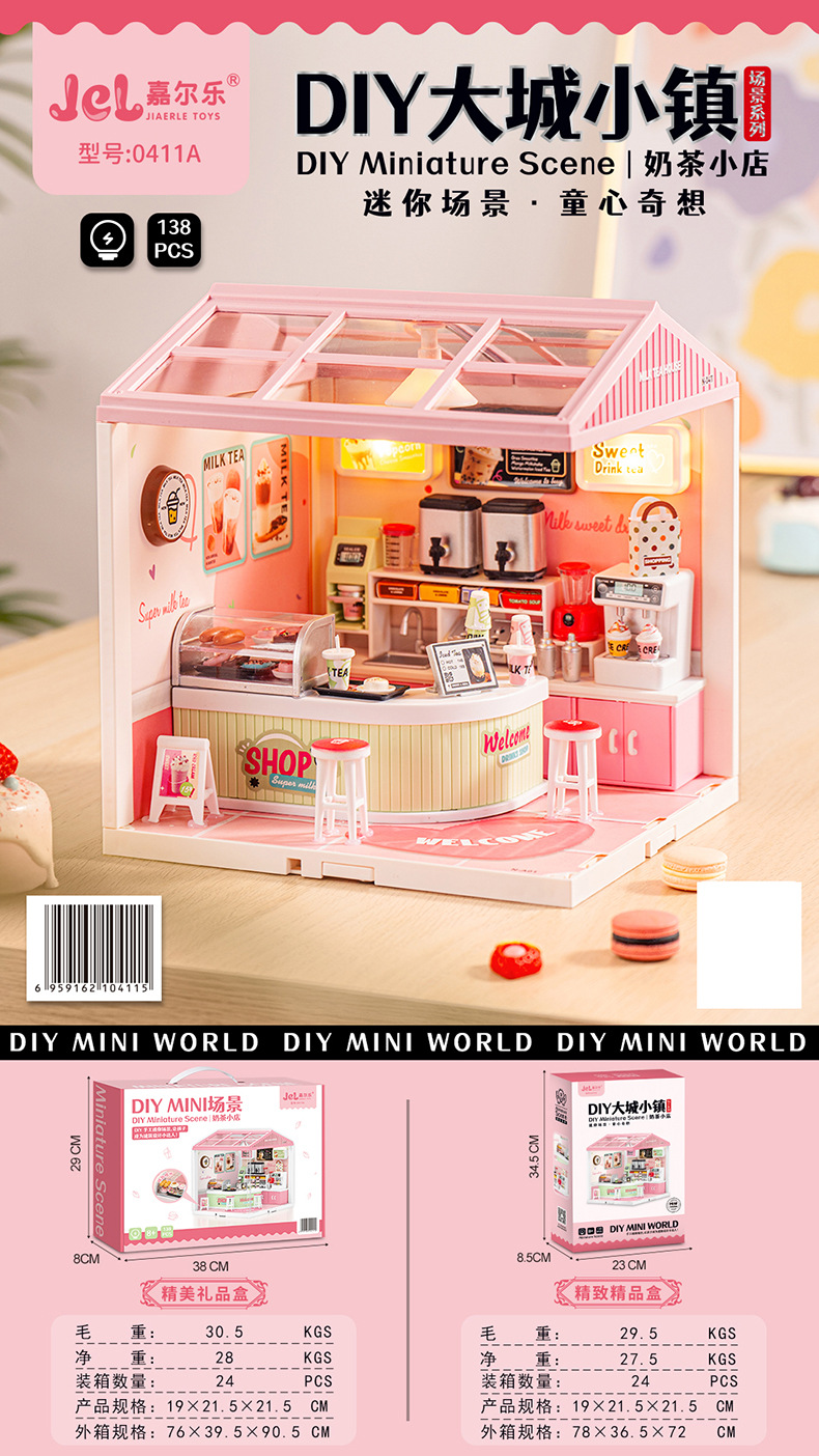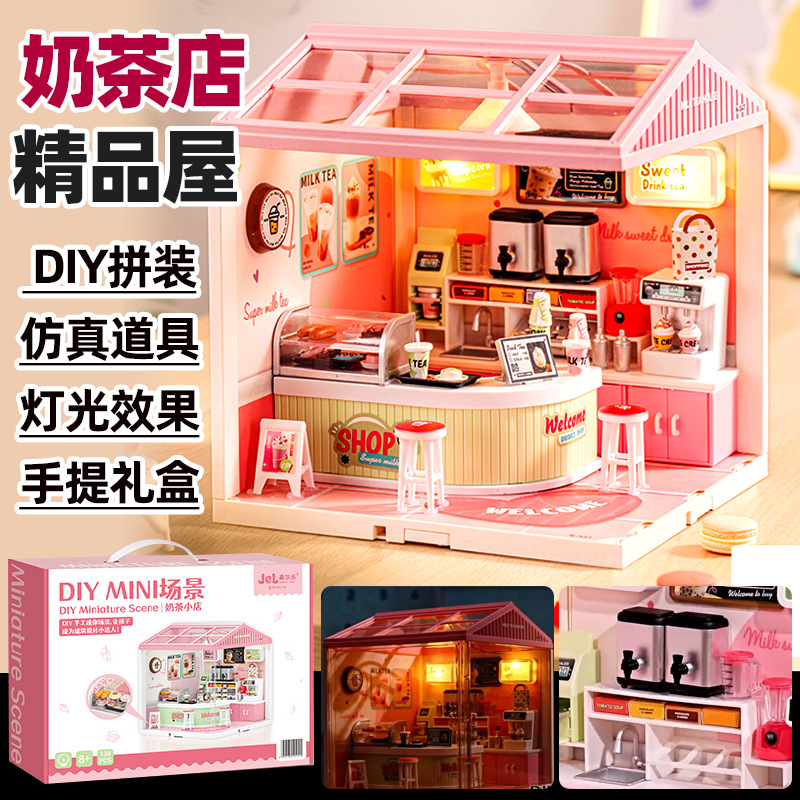 새로운 DIY 캐빈 우유 차 가게 손으로 조립 된 집 조명 부티크 미니 하우스 모델 소녀 장난감 도매