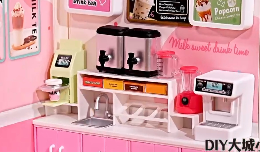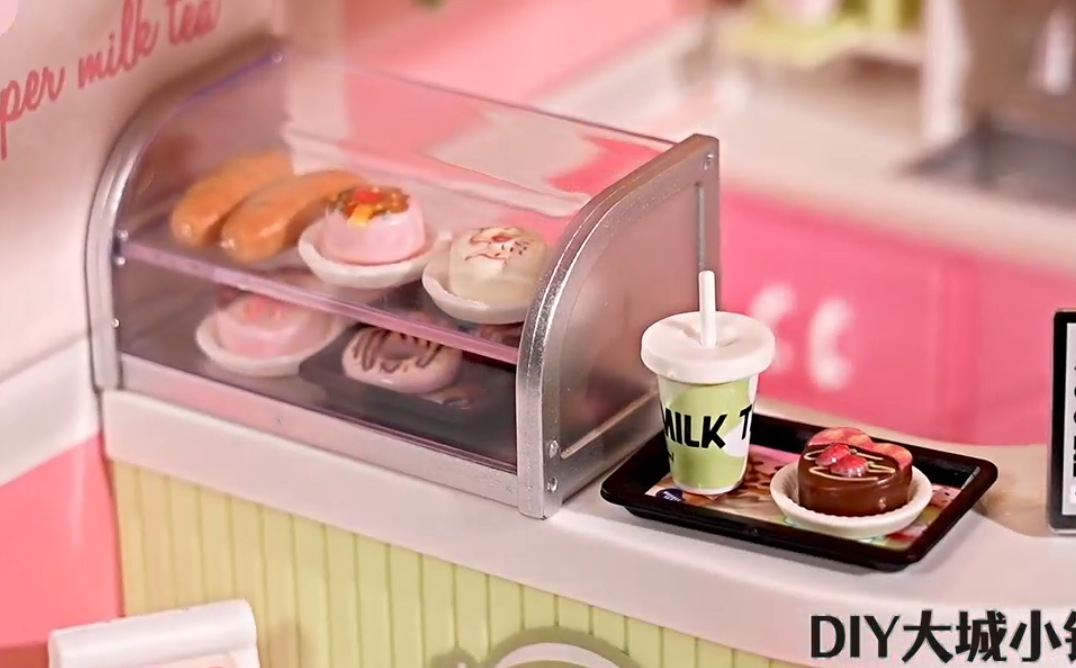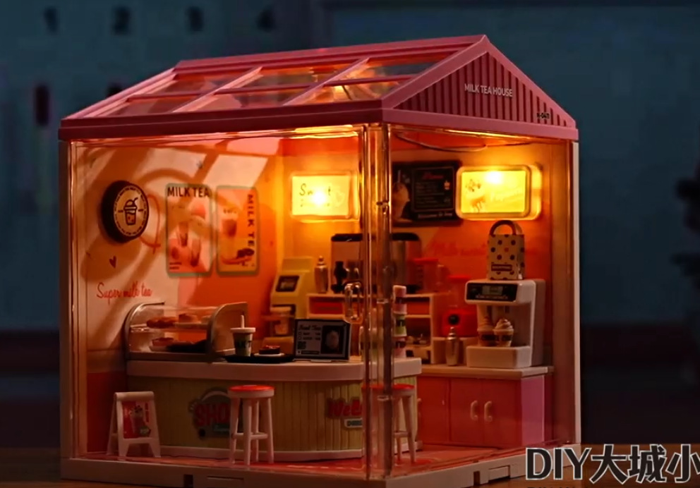새로운 DIY 캐빈 우유 차 가게 손으로 조립 된 집 조명 부티크 미니 하우스 모델 소녀 장난감 도매스토어 가기