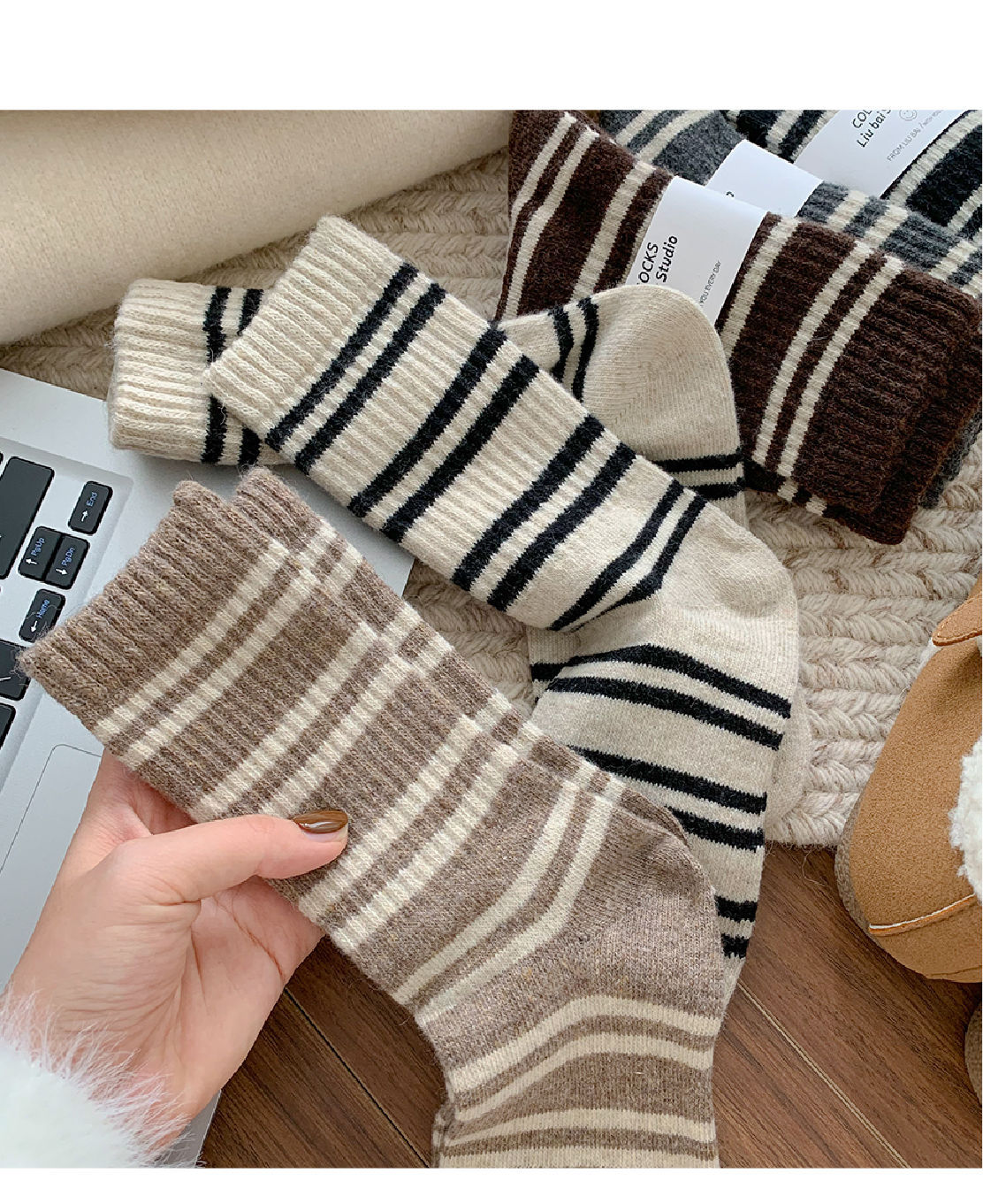 • 더블 스트라이프 종아리 양말
