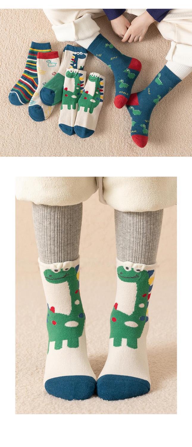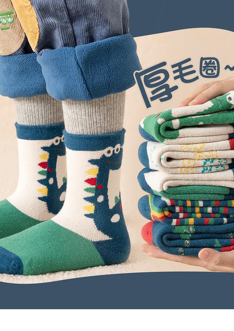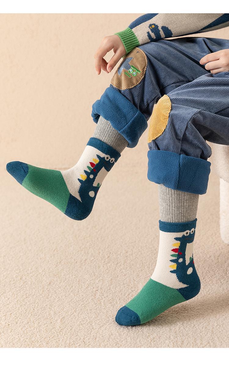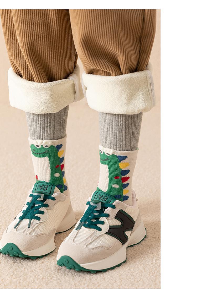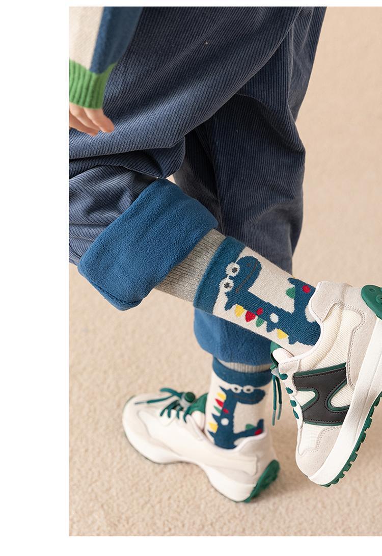 어린이 양말 가을과 겨울 기모 두꺼운 튜브 양말 만화 공룡 스타킹 겨울 테리 학생 남성 양말
